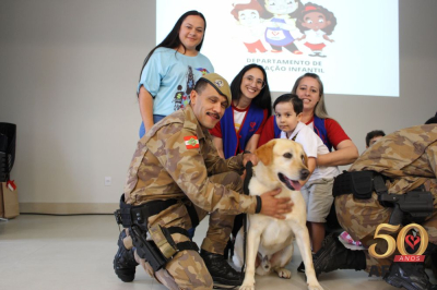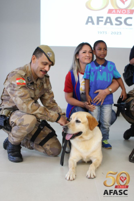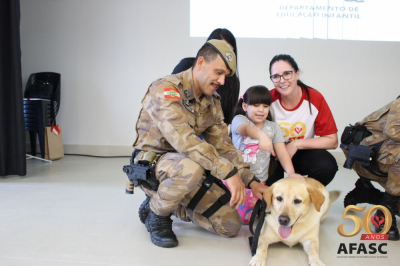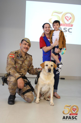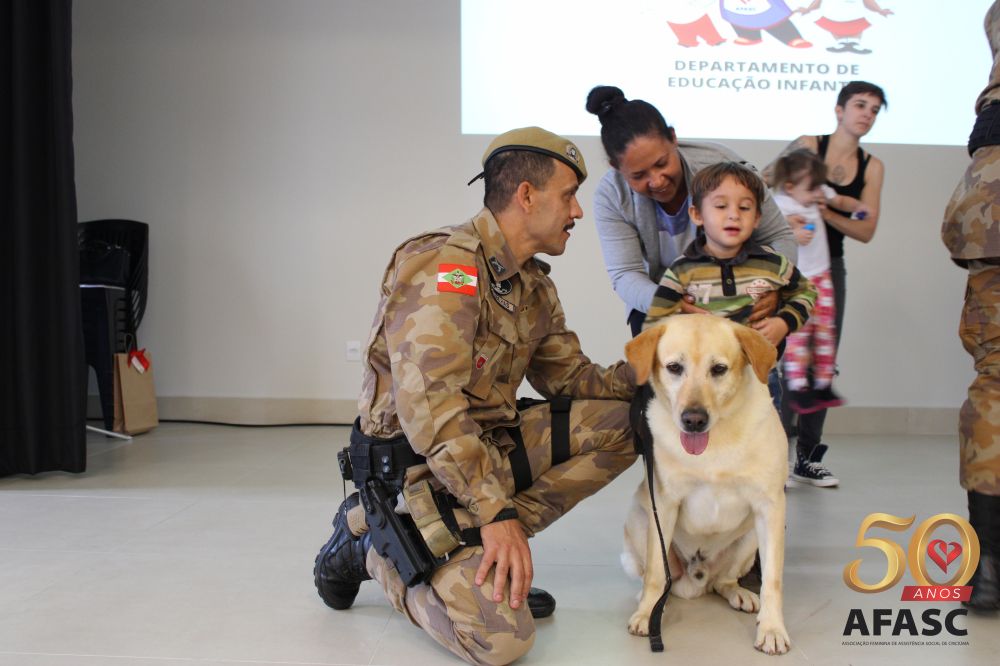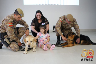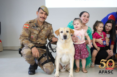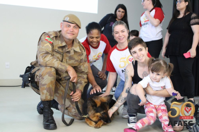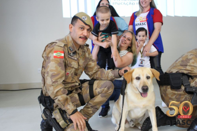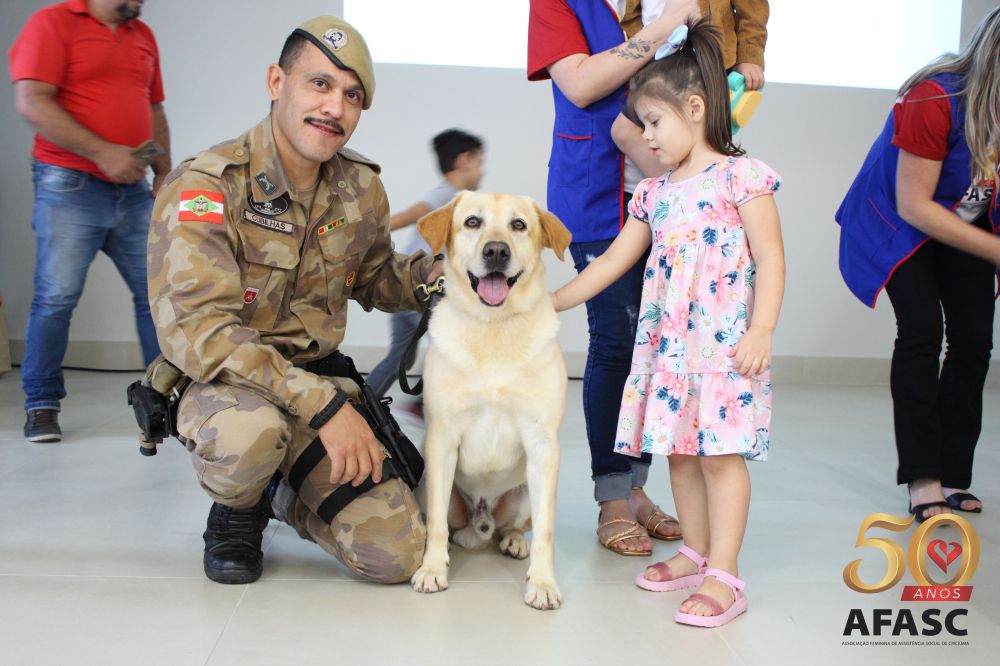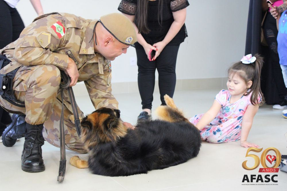 A Terapia Assistida por Cães (cinoterapia) é uma técnica que consiste na introdução desses animais no tratamento de pacientes com o intuito de contribuir para a melhora da saúde psicológica, física e social dos assistidos. No fim da tarde desta sexta-feira (08), o Departamento de Educação Infantil da Afasc e o 9º Batalhão de Polícia Militar (PM), realizaram a entrega dos certificados das crianças que participaram das atividades, finalizando as ações do projeto.