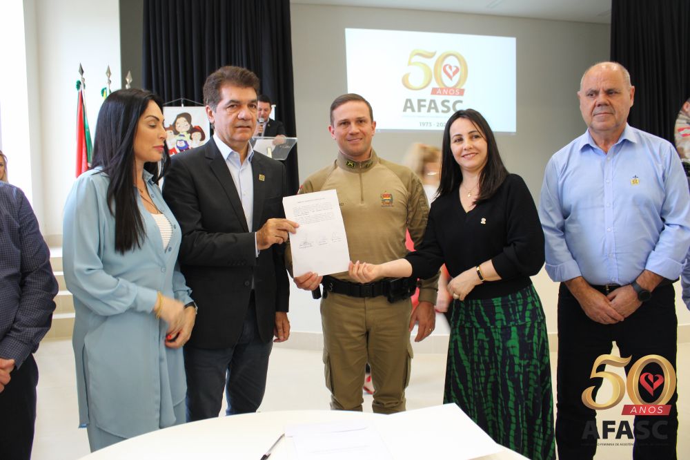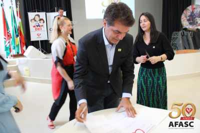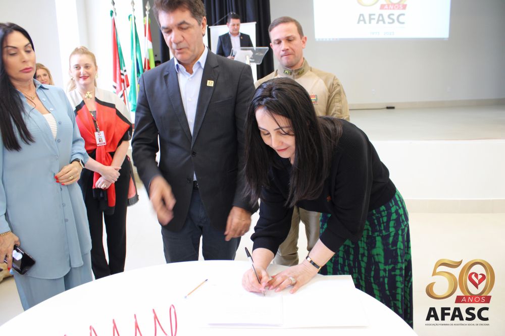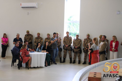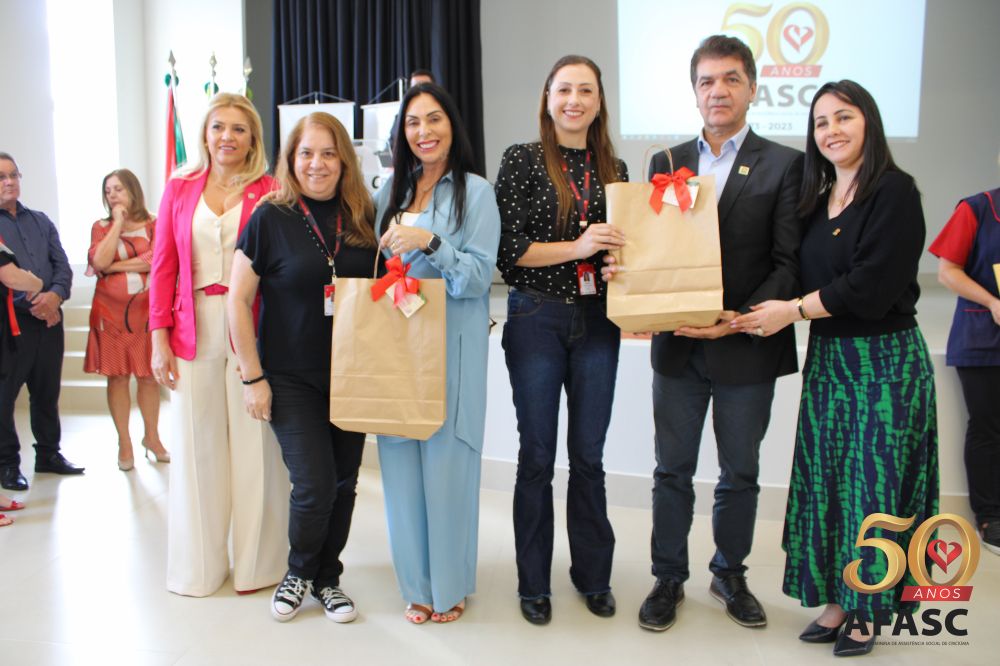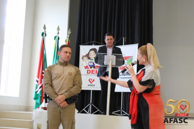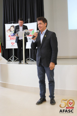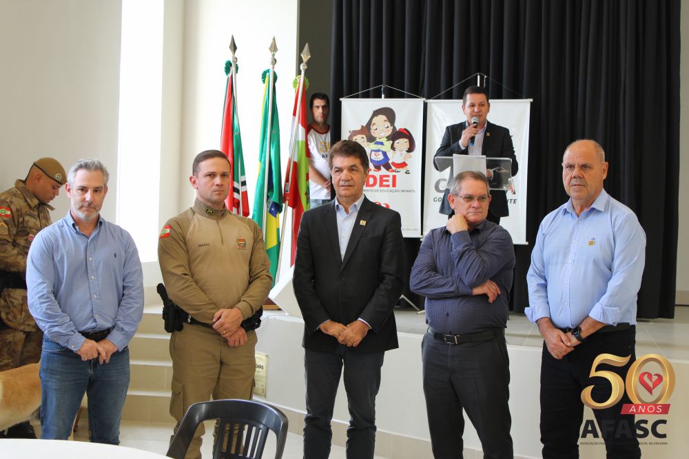 O evento contou com a participação do prefeito Clesio Salvaro, da deputada federal, Geovânia de Sá, de presidente da Câmara de Vereadores, Salesio Lima, da vereadora, Roseli de Lucca, do secretário geral, Arleu da Silveira, direção da Afasc, diretoras dos CEIs e familiares das crianças.