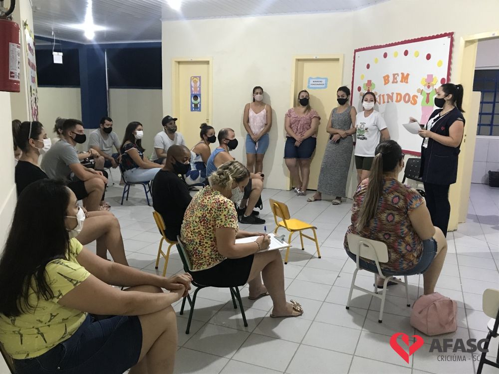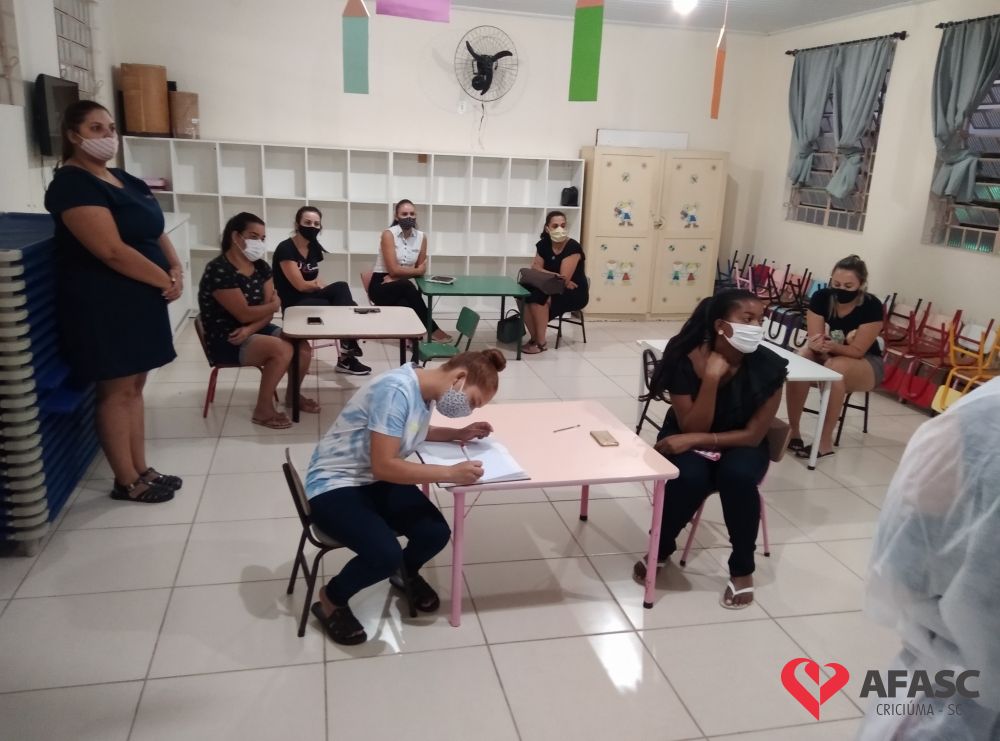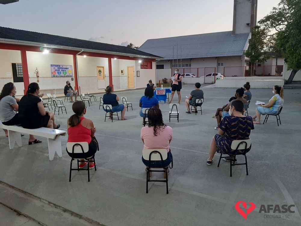 As atividades nos Centros de Educação Infantil (CEI) da Afasc iniciaram no dia 8 de fevereiro. Desde então, as gestoras das unidades escolares se organizaram para realizar a primeira reunião de pais de 2021, que ocorreu durante a última semana do mês de fevereiro, seguindo os regramentos da Vigilância Sanitária, onde foram acolhidos com muito carinho e atenção, pelas equipes das 35 creches.