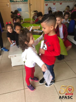 Crianças e professores dos Centros de Educação Infantil (CEIs) da Afasc, realizaram durante a semana diversas atividades que reforçam a partilha. Com os trabalhos realizados, as creches incentivaram a formação de valores como solidariedade, companheirismo, amizade e respeito ao outro.