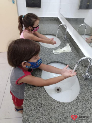 - É importante que, caso tenha idade hábil, a família explique para a criança a importância de se proteger com o uso da máscara de forma correta no ambiente escolar.