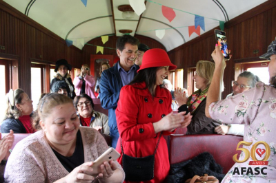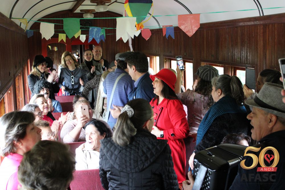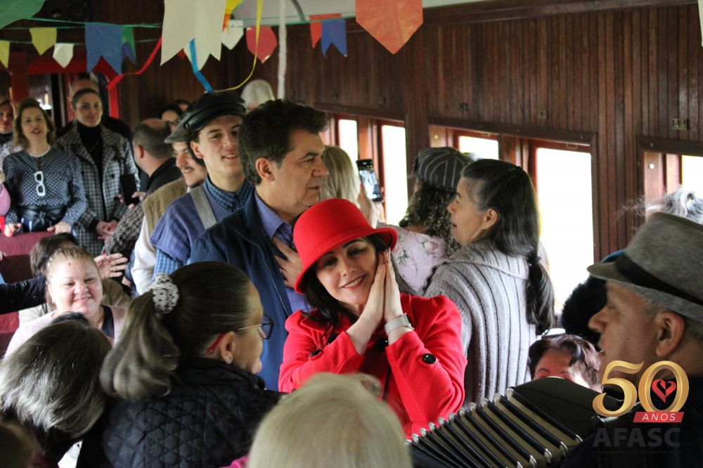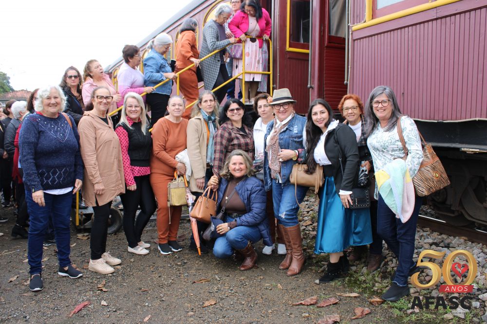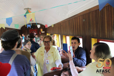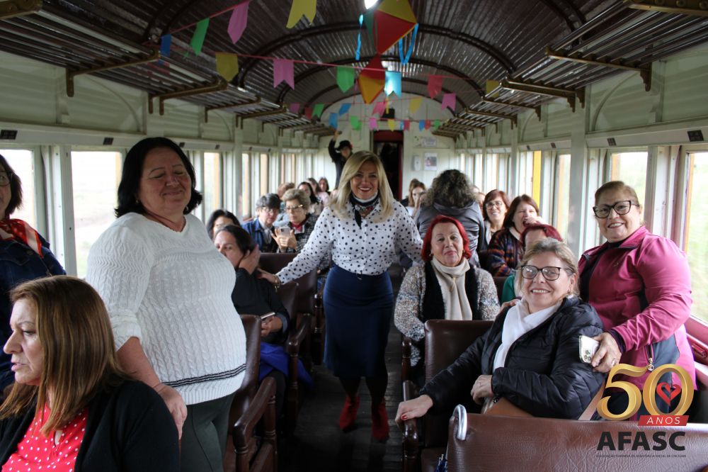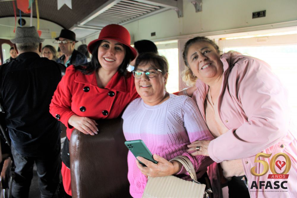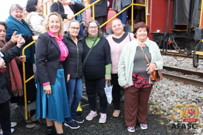 Nesta terça-feira (8), mais uma emocionante etapa do projeto "Trem da História - De volta ao passado" promovido pela Afasc, foi realizada, proporcionando um dia inesquecível para as participantes do Clube de Mães. A iniciativa tem como objetivo relembrar momentos marcantes do passado, celebrando a história e a cultura da região.