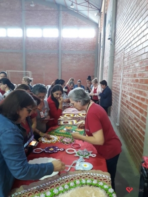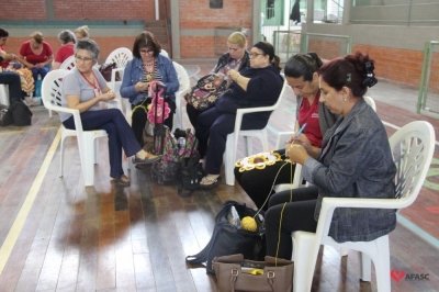 Participantes dos Clubes de Mães e monitores estão tendo uma chance única de aperfeiçoar seu aprendizado na área de artesanato. Uma parceria entre a Associação Feminina de Assistência Social de Criciúma (Afasc), por meio de Departamento de Clube de Mães/Inclusão Produtiva, disponibilizou três dias de workshops. O primeiro encontro foi realizado nesta terça-feira (25), com a profissional Luana Jaworski, que trabalhou decoração, utilizando como peça central flores de crochê.