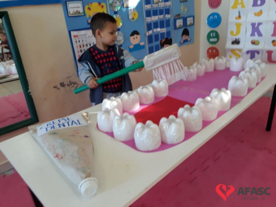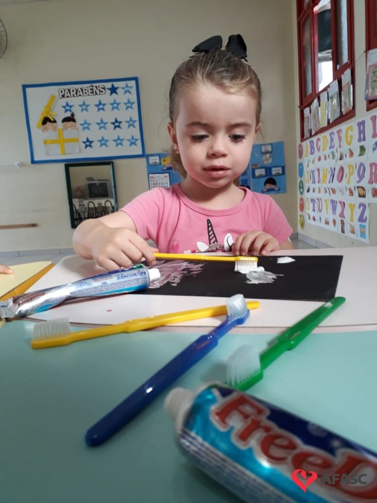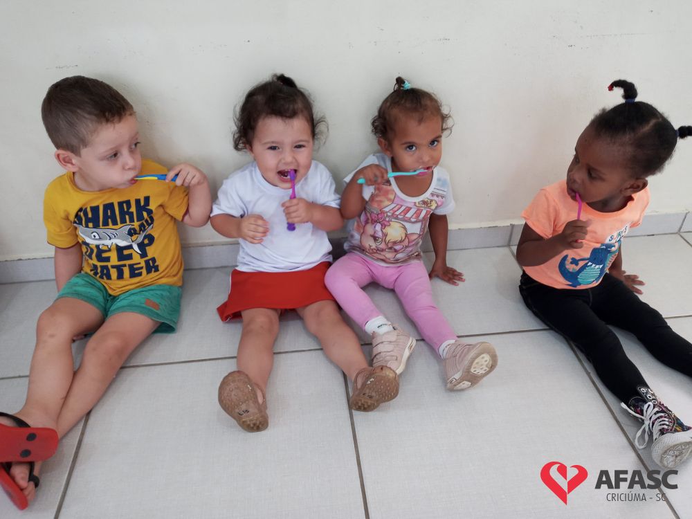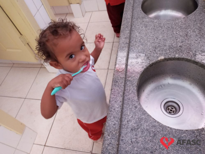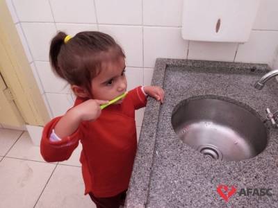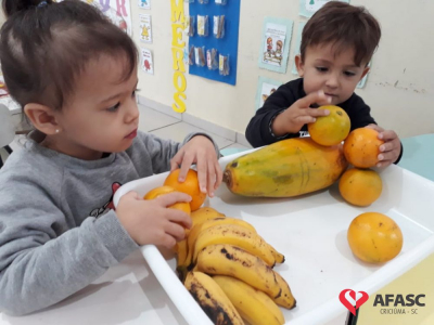 A escola é um grande contribuinte na formação das crianças, e por isso, ela tem o importante papel de conscientizar seus alunos para uma alimentação saudável, sendo essa uma forma de trazer benefícios à saúde, pois previne obesidade, colesterol, diabetes, entre outros. Desde que iniciaram as atividades do projeto macro “Pequenos Cientistas – os 4 elementos da natureza”, as professoras dos Grupos II e III do CEI Afasc Gerda Becke Machado, tem destacado em seus projetos de sala de aula a importância de uma alimentação saudável e a prática de higiene. Por meio de atividades diferenciadas, elas vêm promovendo uma reeducação alimentar com alimentos disponibilizados pela creche, contribuindo com a promoção da saúde de forma lúdica, divertida e educativa.