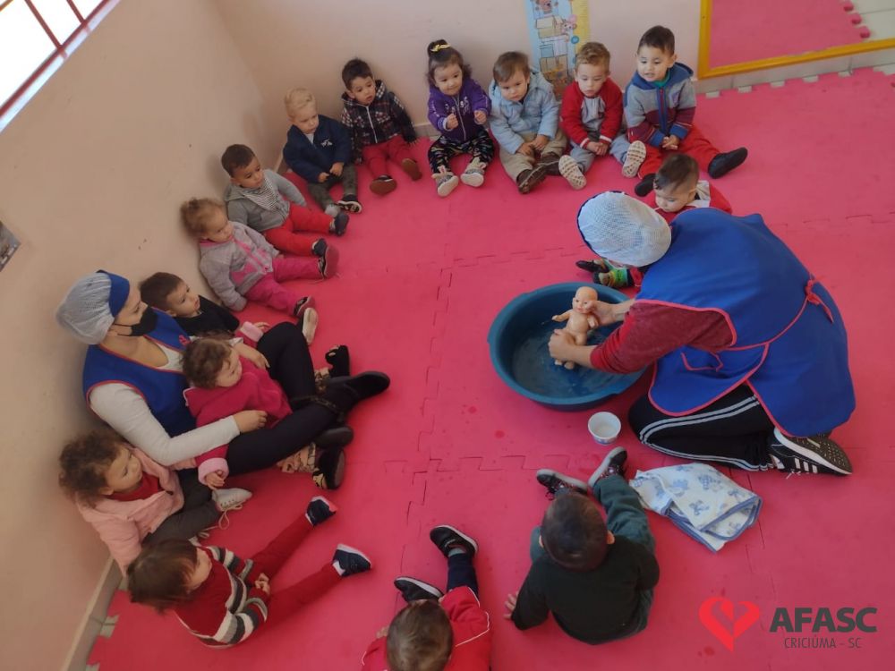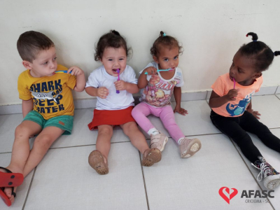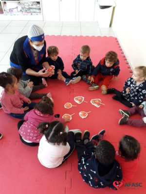 Crianças dos Grupos dois e três do CEI Afasc Gerda Becke Machado recebem estímulos para terem uma alimentação saudável