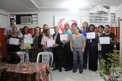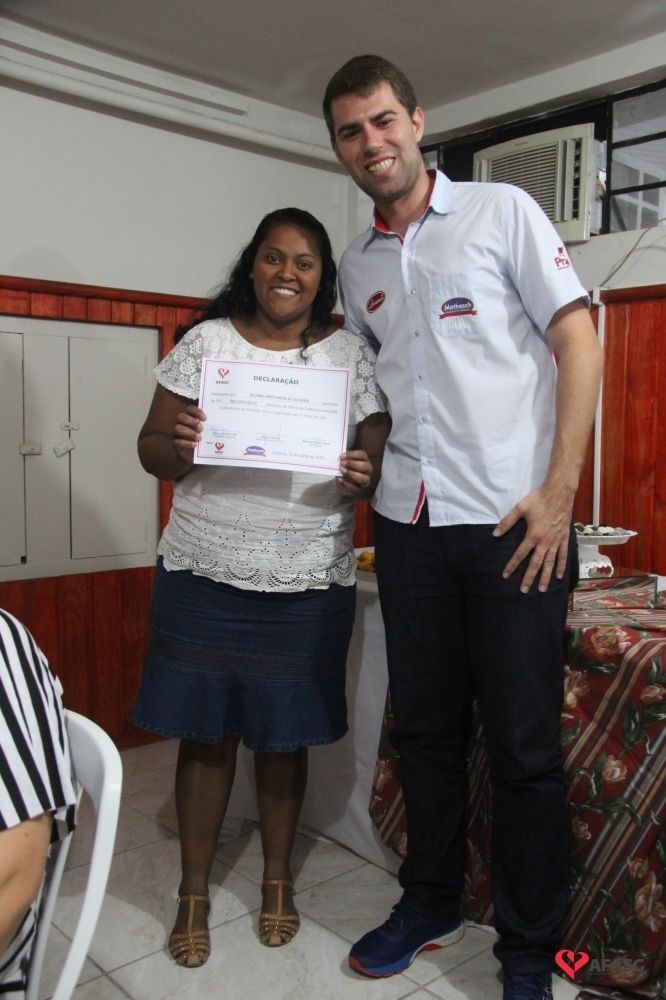 Participantes da oficina de confeitaria da Afasc Solidária e Mathesch recebem declarações de conclusão de curso