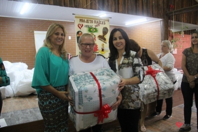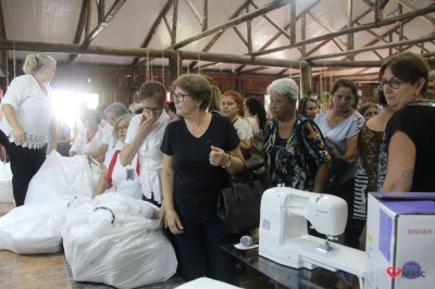 Desde o mês de fevereiro, as monitoras estão participando de treinamentos e capacitações sobre o projeto para repassarem informações para as participantes, que estarão resgatando a diversidade cultural brasileira de maneira criativa e ininterrupta, por meio de linguagens culturais. Durante o encontro foi realizada a entrega dos kits de materiais individual e para os grupos, máquina de costura e a entrega dos edredons da gincana de Natal.