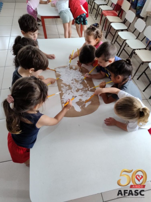 Esses foram alguns dos objetivos que levaram as professoras dos Grupos 4 A e B, Juselia dos Santos, Ana Lucia de Souza, Rosânia Ferreira, Maristela Gilli, Erica Rodrigues, Márcia Campos e Mirieli Costa, a realizar o projeto “Urda 30 anos, vamos juntos aprender sobre nossa identidade”. As atividades propostas, foram as mais variadas, desde contação de histórias do antigo Centro de Atenção Integral à Criança (CAIC), até a transformação em CEI Afasc Urda Joana Joaquim.