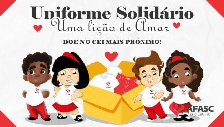 Pensando na necessidade de ampliar as ações de proteção, segurança e igualdade as crianças atendidas no Centros de Educação Infantil (CEIs) da Associação Feminina de Assistência Social de Criciúma (Afasc), o Departamento de Educação Infantil (DEI) está iniciando a campanha “Uniforme Solidário”.