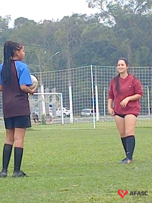 As atletas da oficina de Futsal da Estação Cidadania, Maria Clara Narciso e Maria Luiza Feuser, de 16 anos, estiveram no campo da Unesc nesta terça-feira (2), participando do treinamento da equipe Meninas Carvoeiras, do Criciúma Esporte Clube. Diariamente, as meninas são treinadas pelo técnico Leandro Leite, responsável pelo grupo de futebol de salão na Estação.