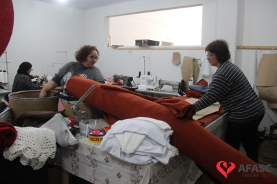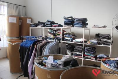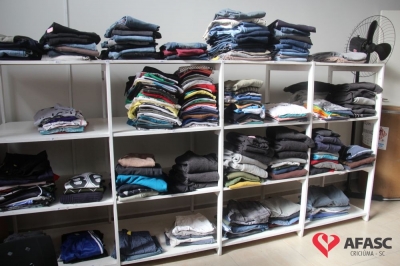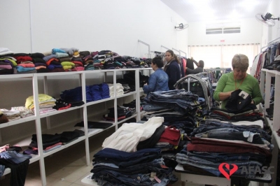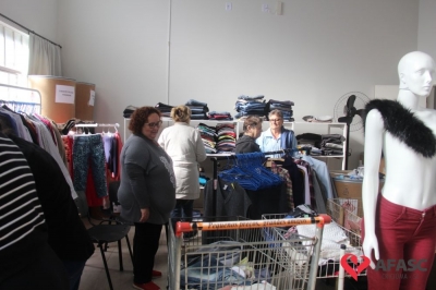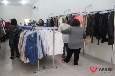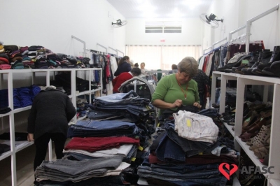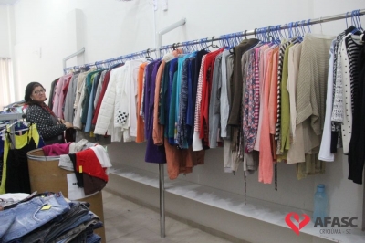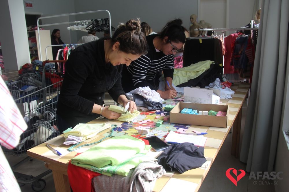 A organização do espaço está sendo realizada pela equipe da Afasc Solidária, departamento de Clube de Mães e voluntárias, que estão separando e etiquetando as peças que estarão a venda.