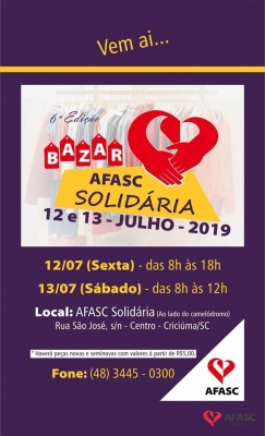 Afasc Solidária realizará 6ª edição do bazar solidário