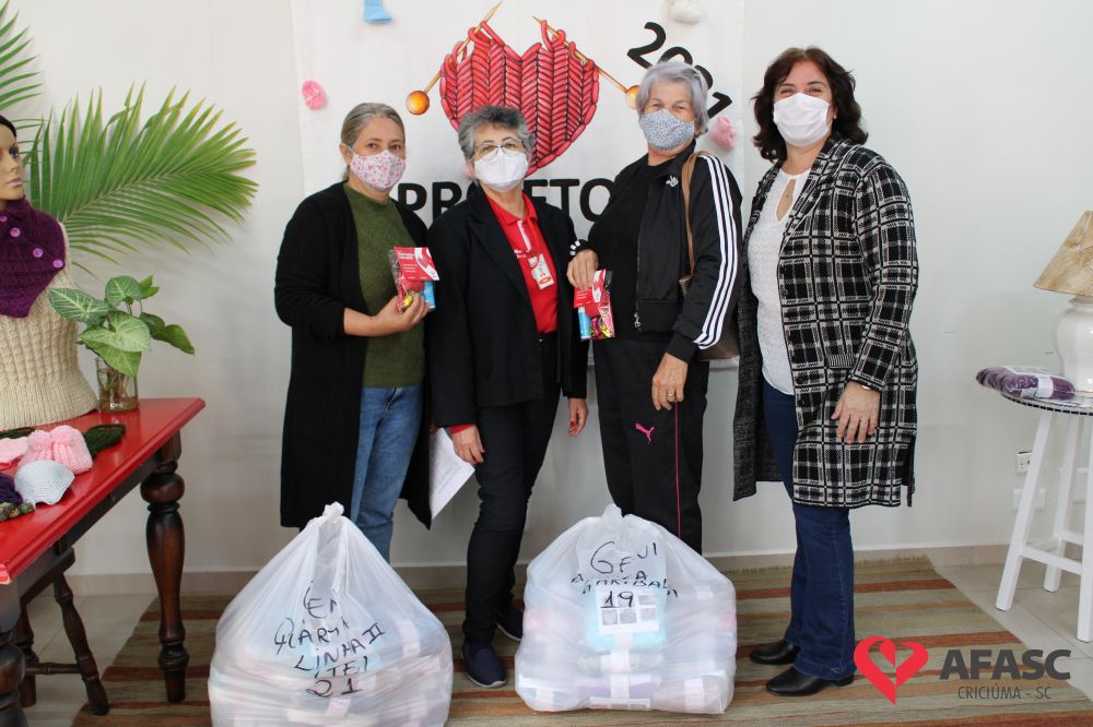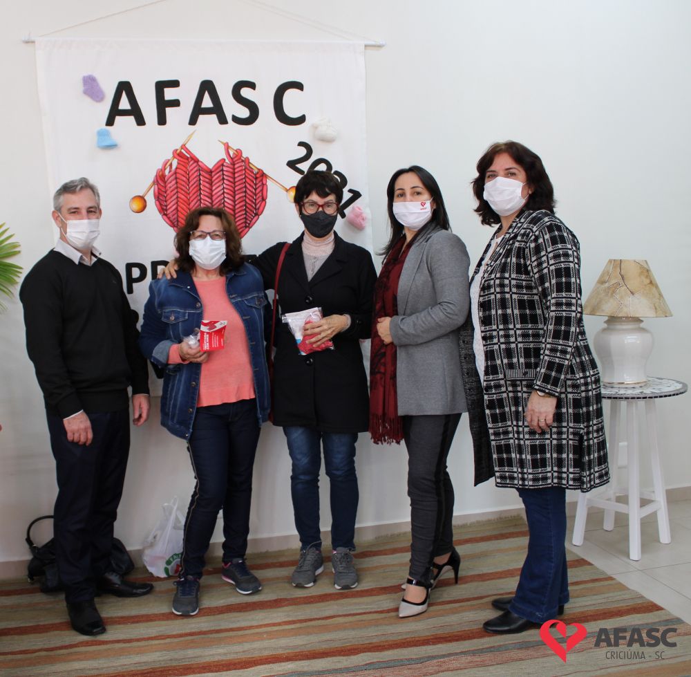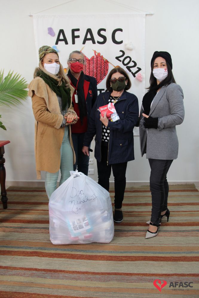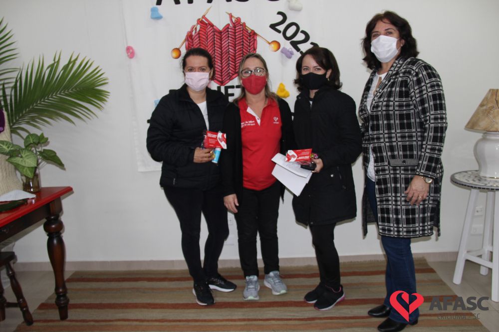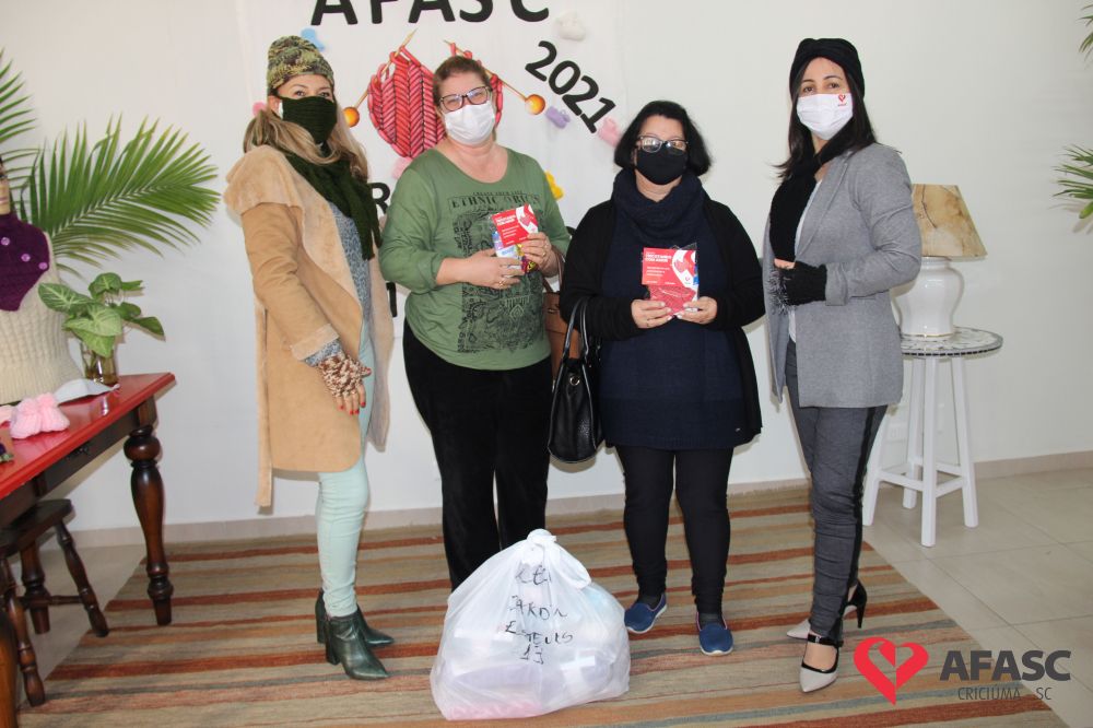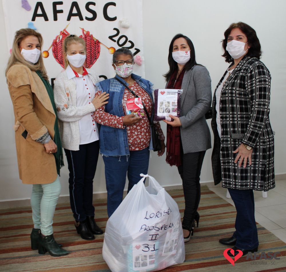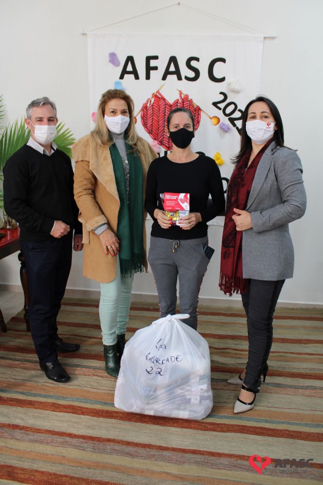Entendendo a atual situação e respeitando o decreto e orientações dos órgãos de saúde, os Clubes de Mães da Associação Feminina de Assistência Social de Criciúma (Afasc), não voltaram a atender as participantes de forma presencial. No entanto, para incentivar, valorizar e trazer à tona o espírito de solidariedade, a equipe do departamento, a coordenadora do setor, Nézia João Pereira, juntamente com a presidente de honra, Adriana Salvaro, a presidente do Conselho Administrativo, Robinalva Ferreira e o diretor administrativo da instituição, Adriano Boaroli, realizaram nesta terça-feira (15), a entrega do material do projeto “Tricotando Com Amor”.