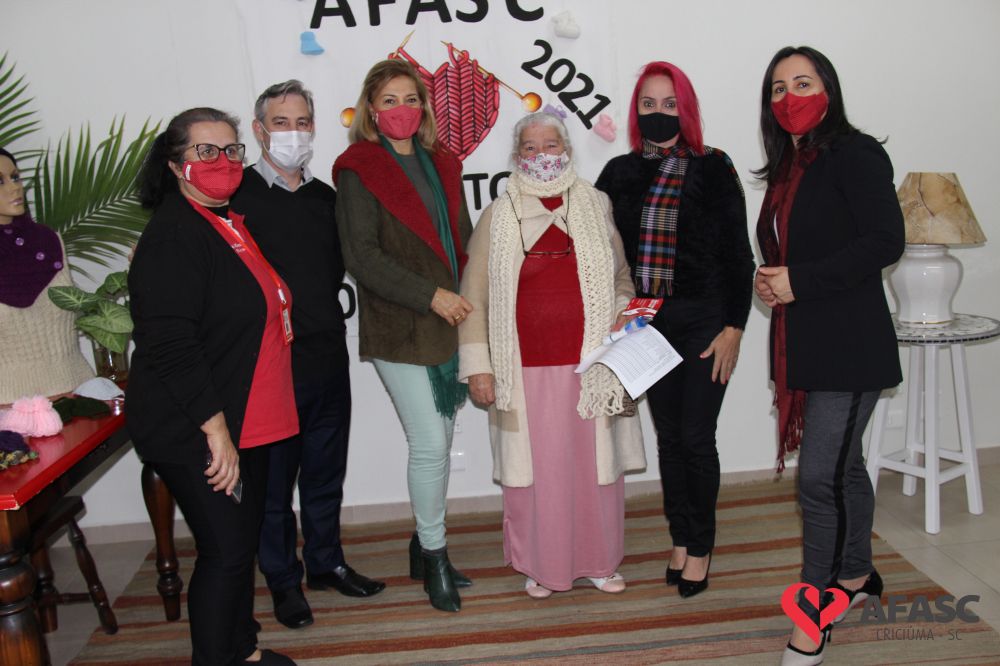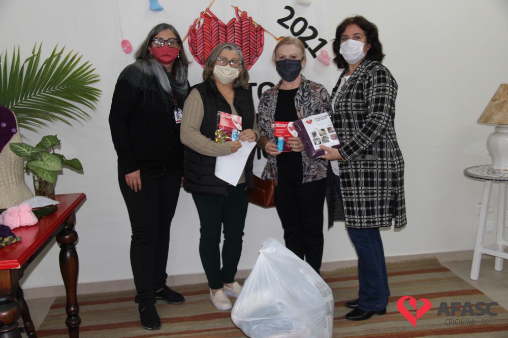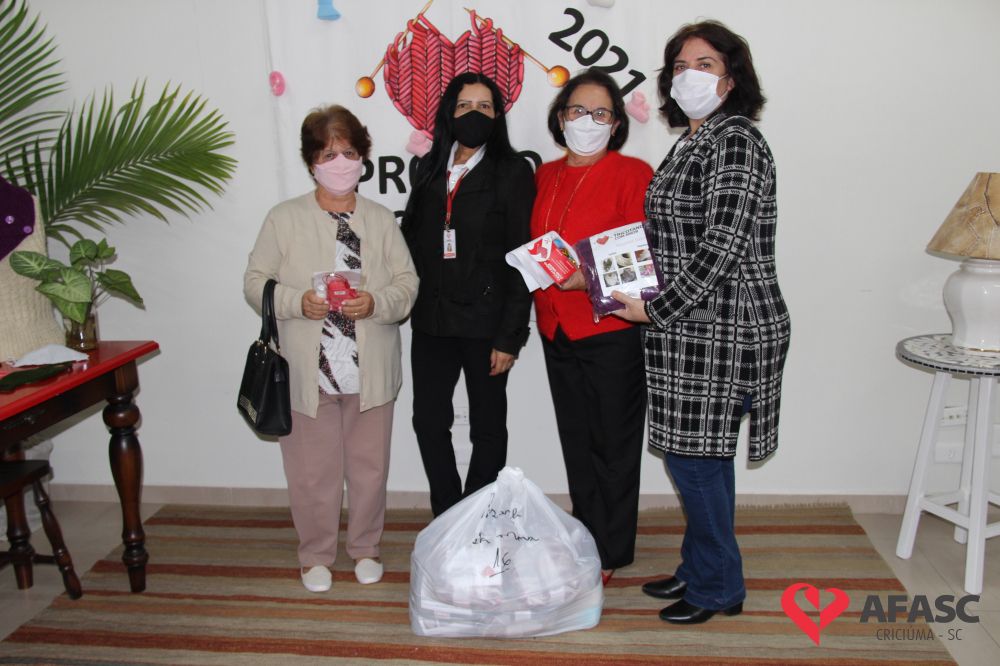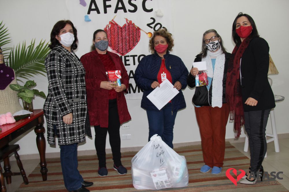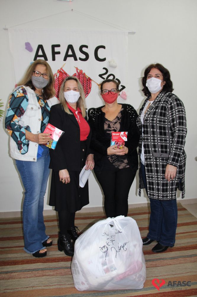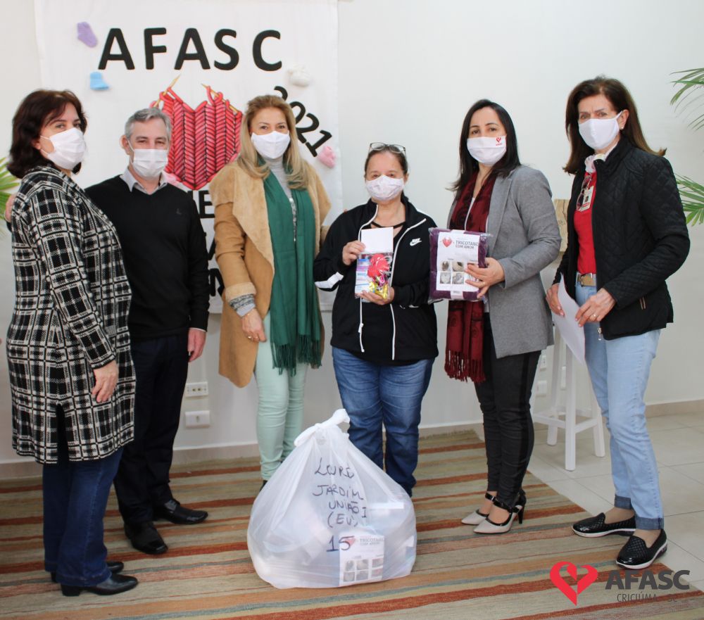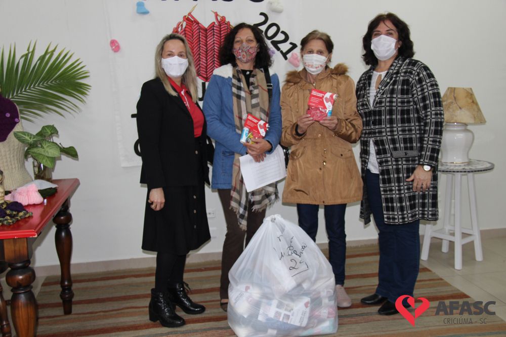 Entendendo a atual situação e respeitando o decreto e orientações dos órgãos de saúde, os Clubes de Mães da Associação Feminina de Assistência Social de Criciúma (Afasc), não voltaram a atender as participantes de forma presencial. No entanto, para incentivar, valorizar e trazer à tona o espírito de solidariedade, a equipe do departamento, a coordenadora do setor, Nézia João Pereira, juntamente com a presidente de honra, Adriana Salvaro, a presidente do Conselho Administrativo, Robinalva Ferreira e o diretor administrativo da instituição, Adriano Boaroli, realizaram nesta terça-feira (15), a entrega do material do projeto “Tricotando Com Amor”.