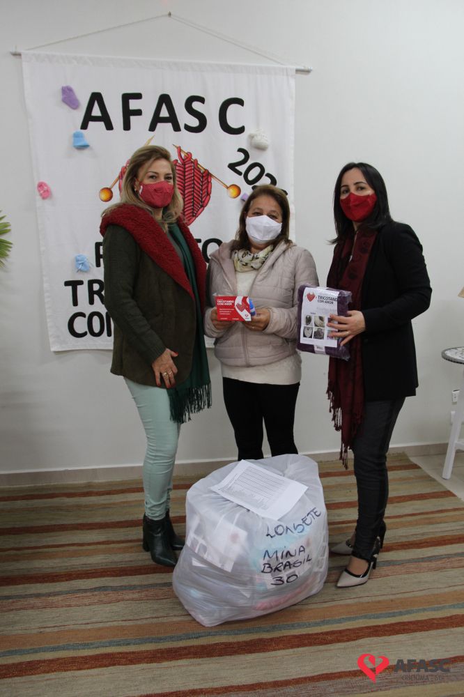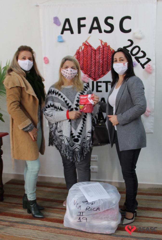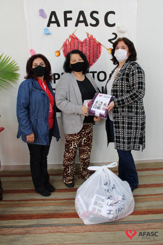 Mais de 3.130 mulheres receberam um kit contendo cinco novelos de lã molet e uma folha com sugestões de peças, que serão produzidas, sendo que cada mãe, poderá escolher uma de suas confecções de tricô, para doar a Afasc Solidária, usuários dos Serviços de Convivência e Fortalecimento de Vínculos de zero a 17 anos, Serviço de Convivência e Fortalecimento de Vínculos para Pessoa Idosa, Departamento de Educação Infantil (DEI) e entidades parceiras do município de Criciúma.