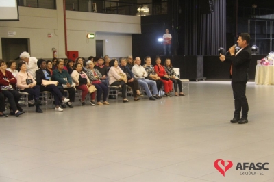 Centenas de idosos de toda a cidade de Criciúma estiveram na tarde desta sexta-feira (4), na AM Master Hall, participando do baile de encerramento realizado pela Associação Feminina de Assistência Social de Criciúma (Afasc), através do Centro de Convivência da Terceira Idade (CCTI) e do departamento de Grupos de Idosos, em alusão a Semana do Idoso. A festa que contou com muita alegria, foi animada pela banda do CCTI e pela equipe do Programa Afasc Ritmo e Saúde.
