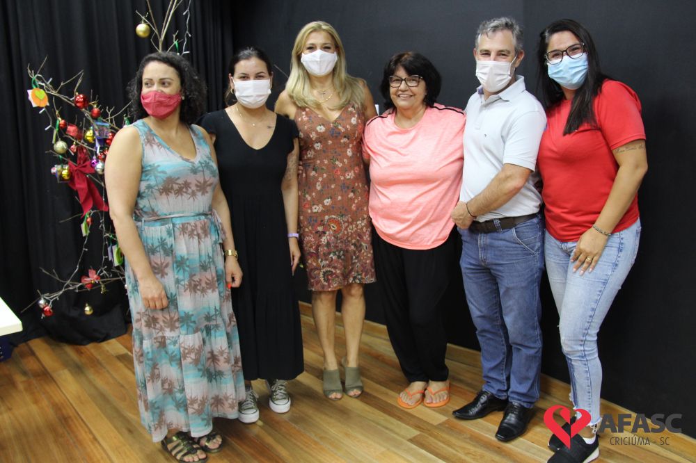 A noite dessa terça-feira (14), foi especial para algumas famílias atendidas pela Estação Cidadania. A equipe da Afasc Solidária esteve no espaço explicando a forma de atendimento do departamento de Assistência Social da entidade e realizou a entrega das cestas de natal para os participantes do encontro. A ação contou com a participação da presidente do Conselho Administrativo, Robinalva Ferreira, do diretor executivo Adriano Boaroli, e da coordenadora da Estação Cidadania, Maria Lauridia da Silva.