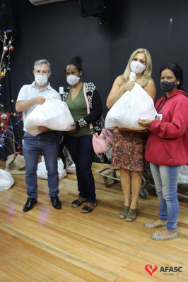 Os produtos utilizados nas cestas natalinas, foram arrecados nos Centros de Educação Infantil (CEI) na campanha organizada pelo Departamento de Educação Infantil (DEI) “Sabores de Natal”, incrementando assim a ceia de natal das famílias cadastradas na Afasc Solidária.