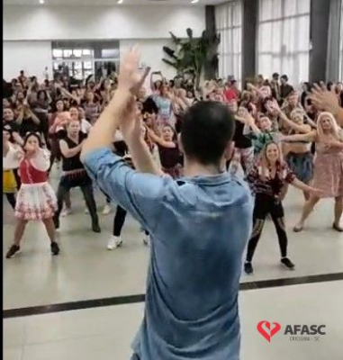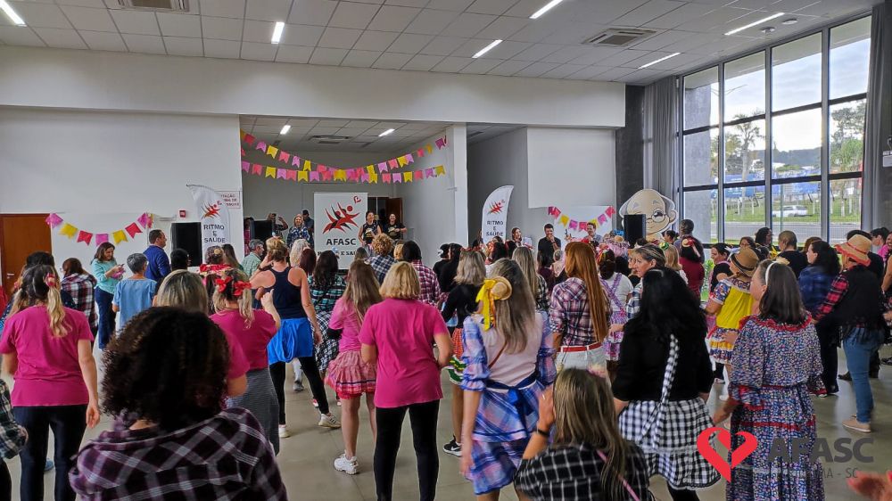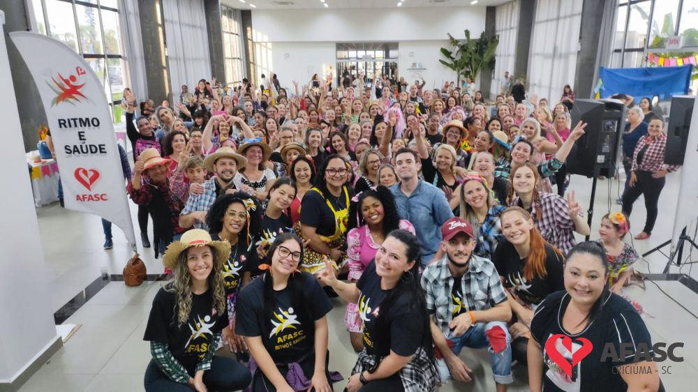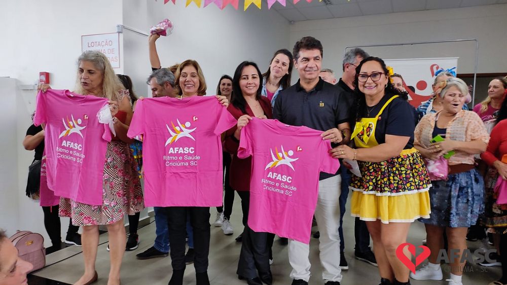 Um “Arraiá” pra lá de especial aconteceu no sábado (16) e envolveu centenas de pessoas que participam do programa Ritmo e Saúde, desenvolvido pela Associação Feminina de Assistência Social de Criciúma (AFSC). O animado evento lotou o Centro de Convivência da Terceira Idade (CCTI), no Parque das Nações. Na ocasião, foi feita a entrega simbólica das camisetas oficiais do Ritmo e Saúde. Os quase mil participantes vão receber o uniforme ao longo desta semana, durante as aulas.