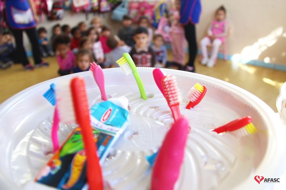Ter um sorriso bonito e, mais do que isso, uma boca saudável, é um desejo de todos. Com o avanço das tecnologias odontológicas, é possível recuperar vários problemas, porém, a prevenção ainda faz toda a diferença. Por isso, é importante que as crianças recebam esses cuidados desde que surgem os primeiros dentes. Em alguns casos, é difícil ensinar os pequenos sobre a escovação correta. Por isso, uma iniciativa das professoras do Centro de Educação Infantil (CEI) Washington, mantido pela Associação Feminina de Assistência Social de Criciúma (Afasc), no bairro Wosocris, tem dado bons resultados, ao incentivar esse hábito através do exemplo.
