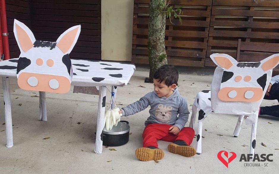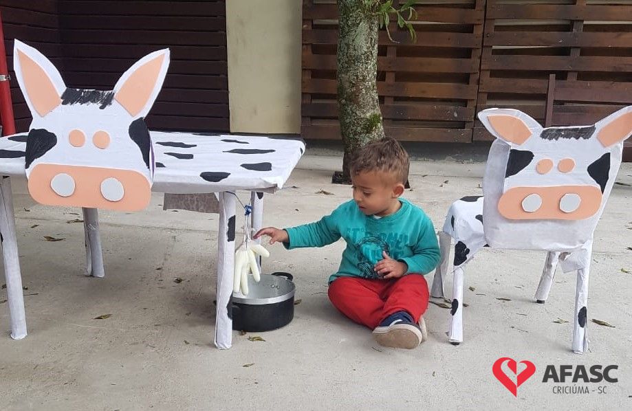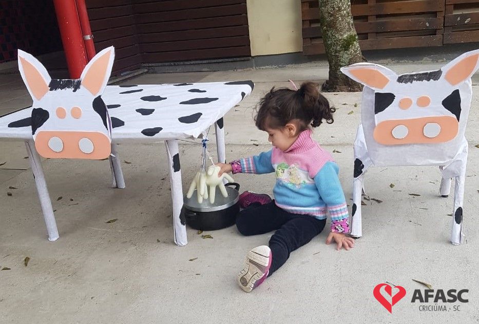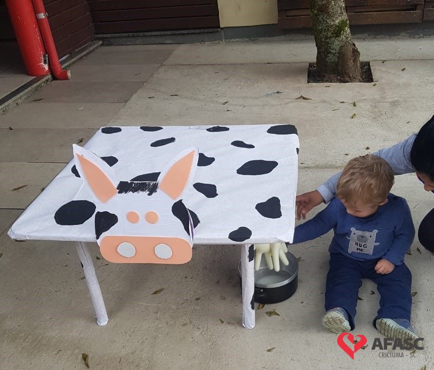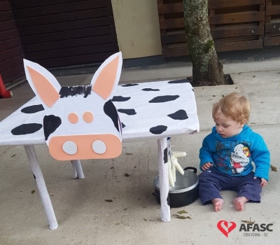 Do meio rural ao urbano, existem diversas espécies de animais convivendo com as pessoas. As crianças, assim como os adultos, percebem e criam um interesse por isso. Percebendo essa curiosidade, as professoras Aline Fernandes e Suzi Minatto desenvolveram com o Grupo Misto I e II do Centro de Educação Infantil (CEI) da Associação Feminina de Assistência Social de Criciúma (Afasc) Umberto Cesa a atividade “Brincando e conhecendo a vida da vaca”.