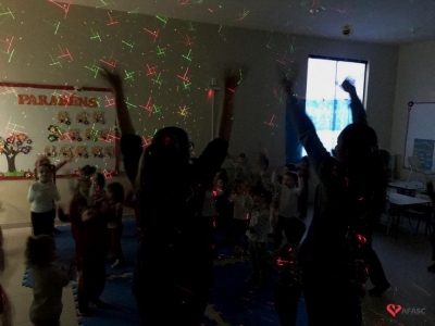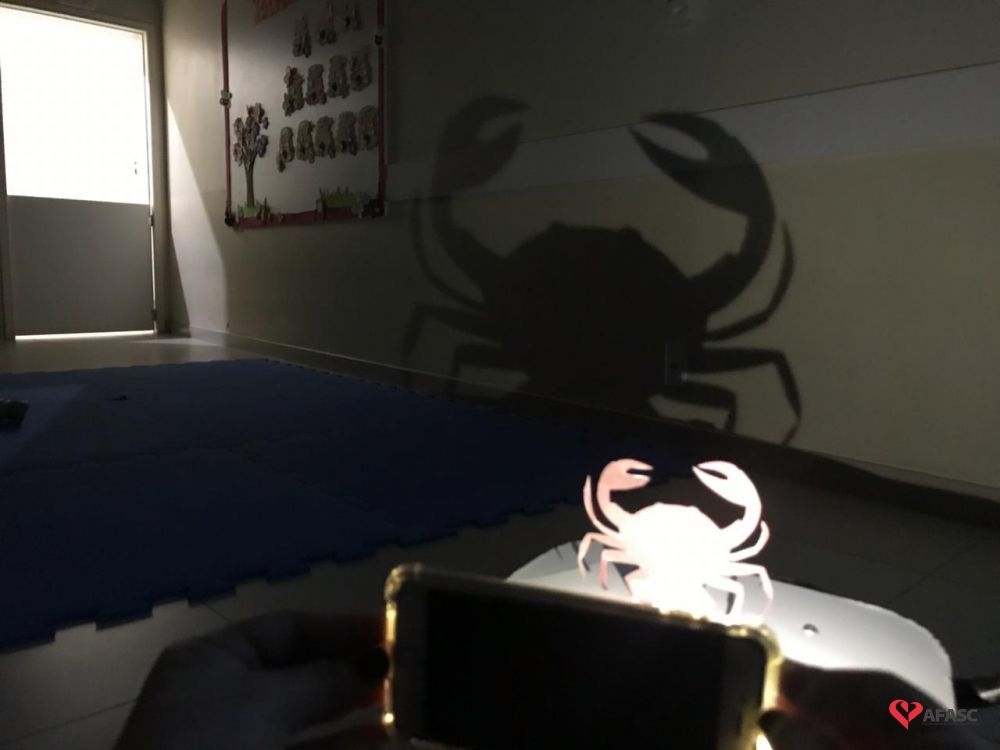 Conforme Andreia, desde muito pequenas, as crianças se encantam som a luz e prestam a atenção às sombras e seus movimentos, aprendendo assim com esses elementos e seus contrastes. “Esse material permite explorar, através do lúdico, a percepção rítmica e corporal que as crianças expressam durante as descobertas dos bichos, já que eles fazem imitação dos mesmos. A atividade se tornou ainda mais divertida, pois contou com a presença da equipe do apoio, que veio auxiliar as crianças em suas novas descobertas”, ressalta a professora.