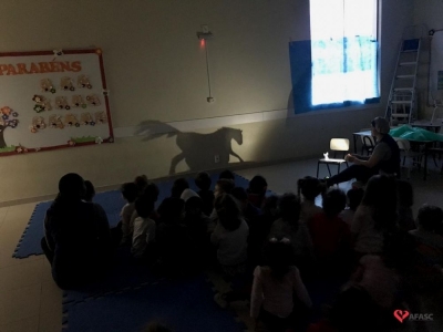 Atividade com sombras anima a tarde chuvosa das crianças do CEI Afasc Pequeno Polegar