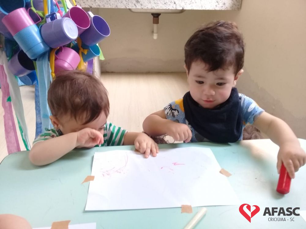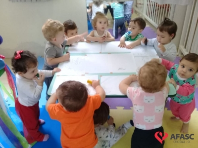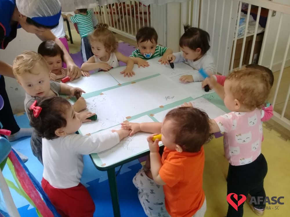 As crianças do Grupo I do Centro de Educação Infantil (CEI) da Associação Feminina de Assistência Social de Criciúma (Afasc) Pequeno Polegar estão na fase de descoberta em todos os sentidos. Aspectos como motricidade, cognitivo e social, estão sendo desenvolvidos diariamente com a ajuda das professoras Denize Colombo, Lisiani Ruchert, Najah Mohamad, Keli Damasio e Suelen Fortuna, que tem trazido atividades que colaboram para crescimento das crianças.