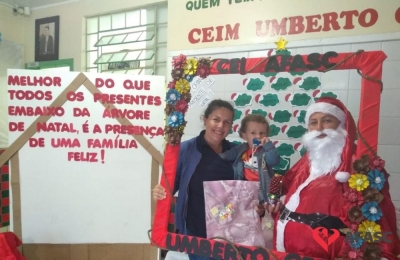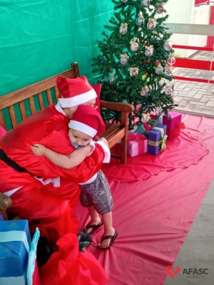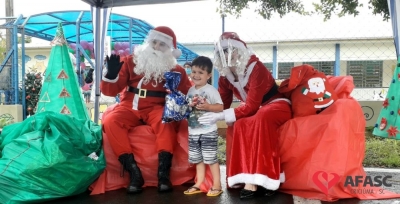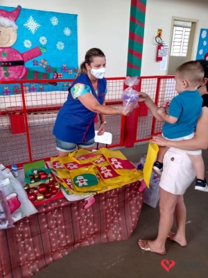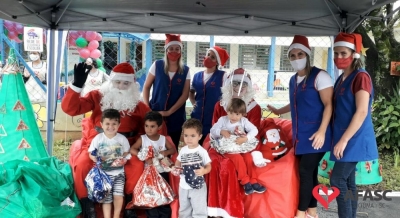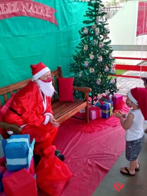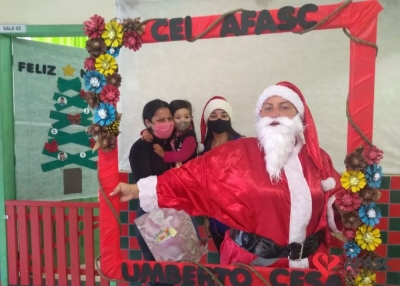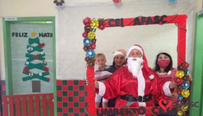 Alguns Centros de Educação Infantil contaram com a presença do Papai Noel durante a realização das entregas dos presentes doados pelos Padrinhos Solidários dos CEI.