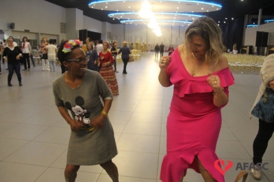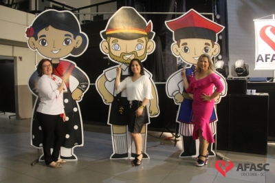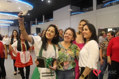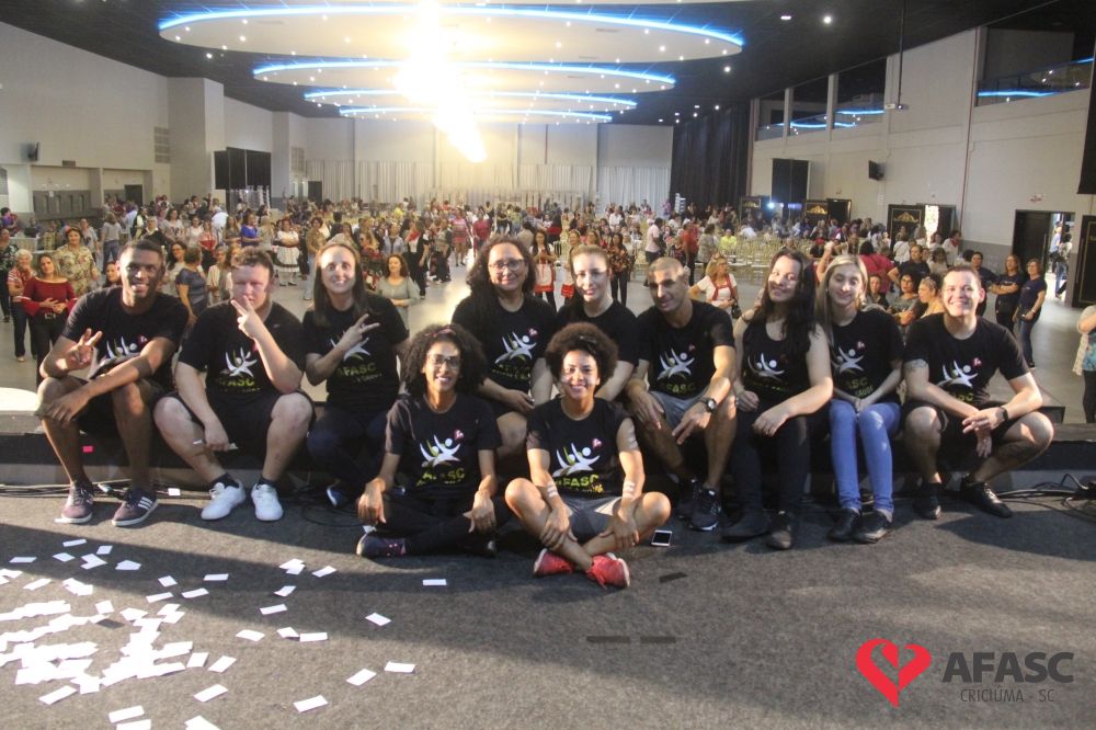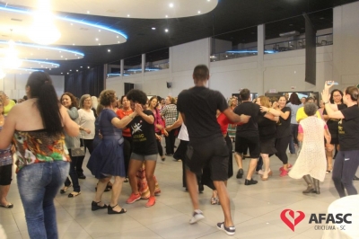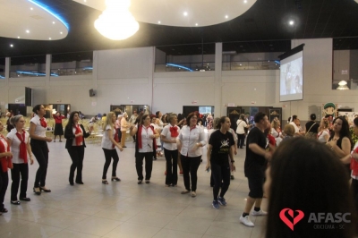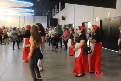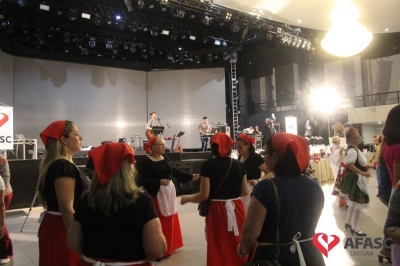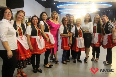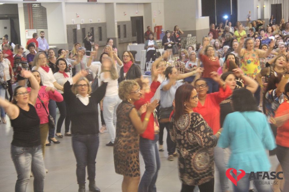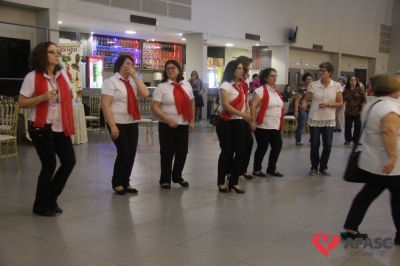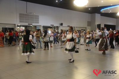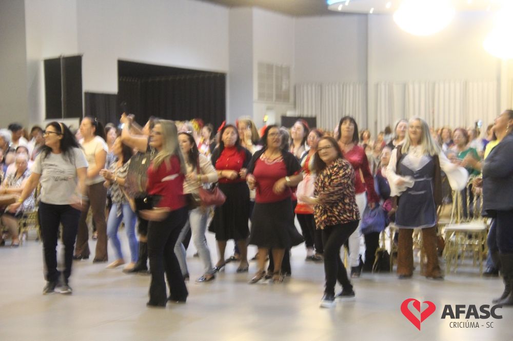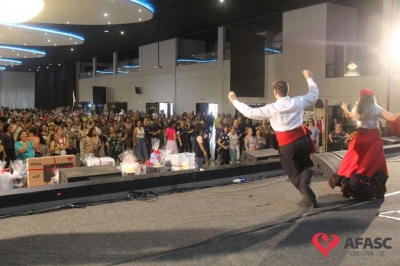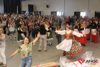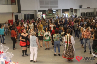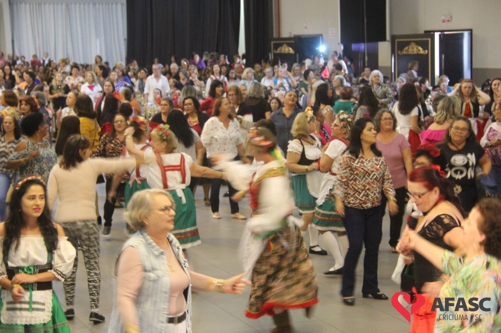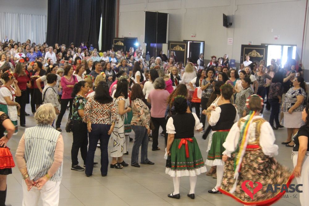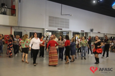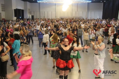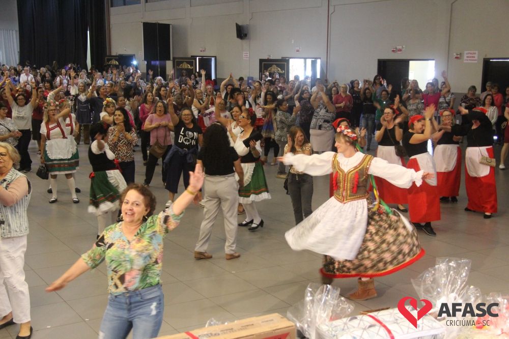 Danças folclóricas, muita alegria e sorteio de brindes. Assim foi o Baile Raízes, realizado pela Associação Feminina de Assistência Social de Criciúma (Afasc), por meio do departamento de Clube de Mães na tarde desta quinta-feira (19) na AM Master Hall. O evento que faz parte do Projeto Raízes, que tem trazido para as participantes dos clubes mais conhecimento cultural e novas técnicas artesanais, reuniu aproximadamente duas mil pessoas, que foram animadas pela equipe do Programa Afasc Ritmo e Saúde.