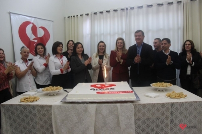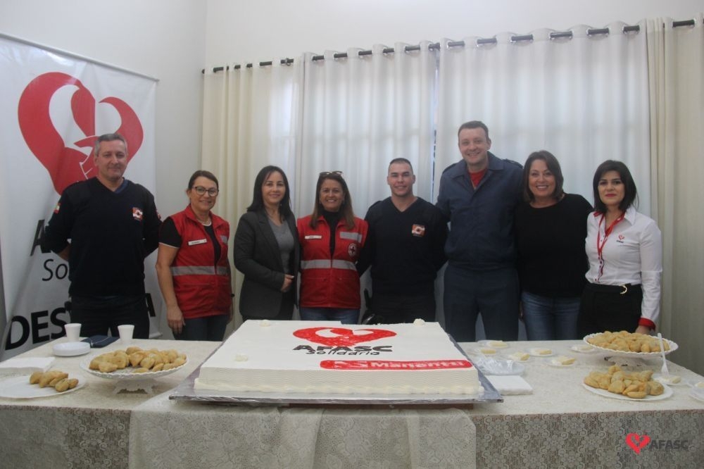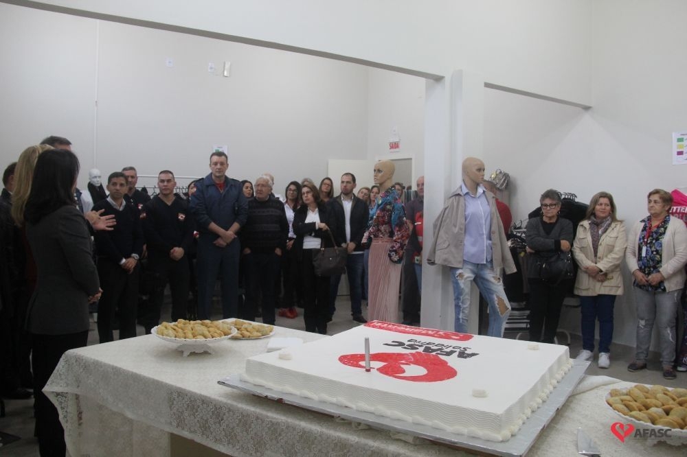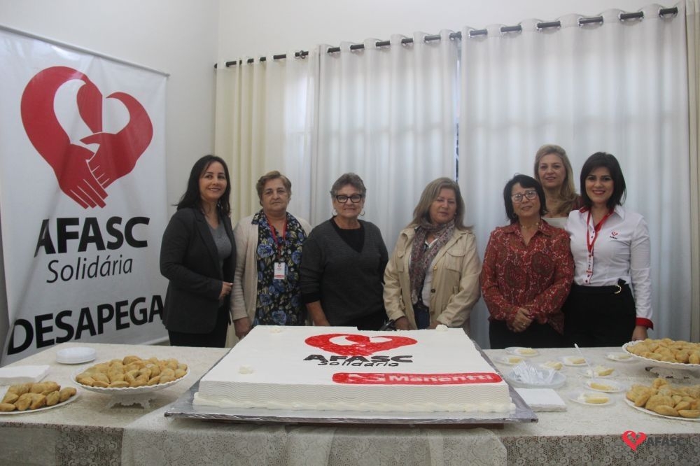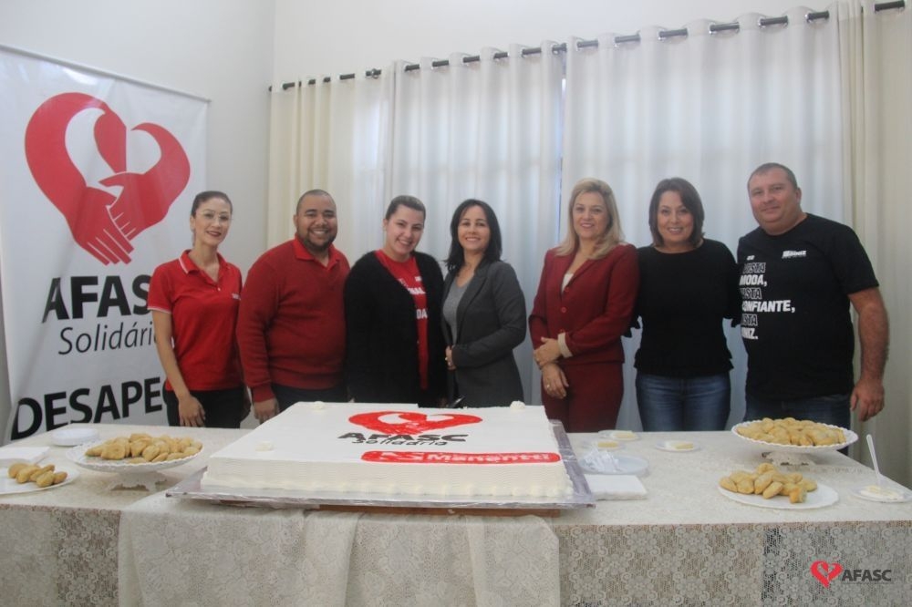Em alusão aos dois anos de abertura dos trabalhos realizados pela Afasc Solidária, vice-prefeito, direção da Afasc, equipe da Afasc Solidária e demais convidados, participaram do corte de bolo.