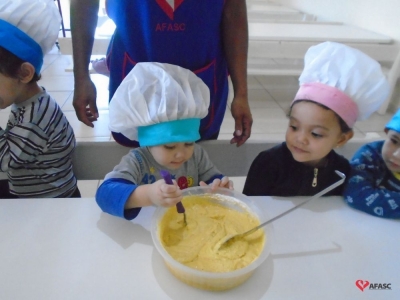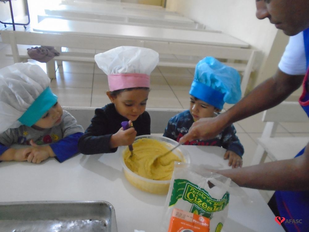 Bolo de milho vira atividade matemática no CEI Afasc Branca de Neve