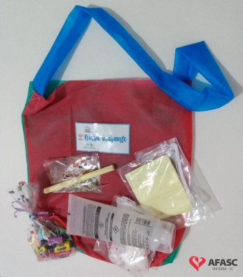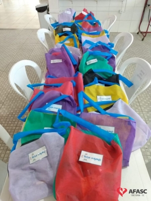 A produção ficou a carga das orientadoras sociais Bruna Cardoso e Simone Feltrin, e contou com a participação dos facilitadores dos dois espaços. Além dos materiais, as bolsas terão um kit cuidados com máscara, álcool em gel e um par de luvas descartáveis, para incentivar crianças, adolescentes e seus familiares, a se cuidarem nesse momento de pandemia.