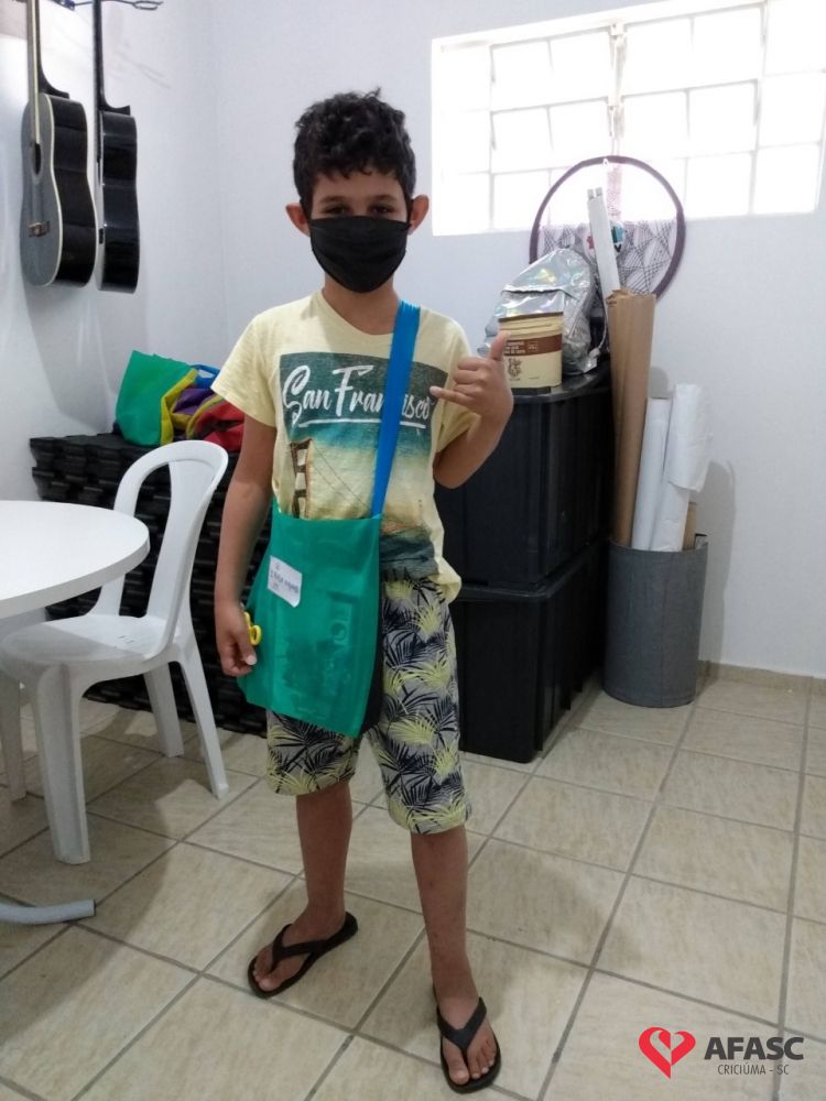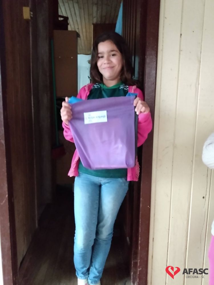 As crianças e adolescentes que participam das oficinas do Serviço de Convivência e Fortalecimento de Vínculos (SCFV) de zero a 17 anos da Associação Feminina de Assistência Social de Criciúma (Afasc) no Centro de Referência de Assistência Social (CRAS) Próspera, receberam seus “Bolsas Viajantes” durante essa semana. A primeira atividade que participantes tiveram acesso foi o “Diário de Quarentena”, idealizado pela facilitadora Manuela Búrigo, que está possibilitando sua oficina de Artes à distância. Nesse material, os participantes deixarão fluir sua imaginação e registrar como estão vivenciando este período de pandemia.