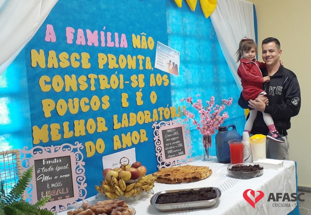 Com o objetivo de promover a aproximação entre os pais e a comunidade escolar, o Centro de Educação Infantil (CEI) da Associação Feminina de Assistência Social de Criciúma (Afasc) Beato Aníbal Maria di Frância realizou sua Festa da Família interna. Além de exposição de atividades, no início da manhã durante a entrega das crianças na creche, e no final do dia, horário de buscar os pequenos, os pais e familiares tomaram um café especial nas dependências do CEI.