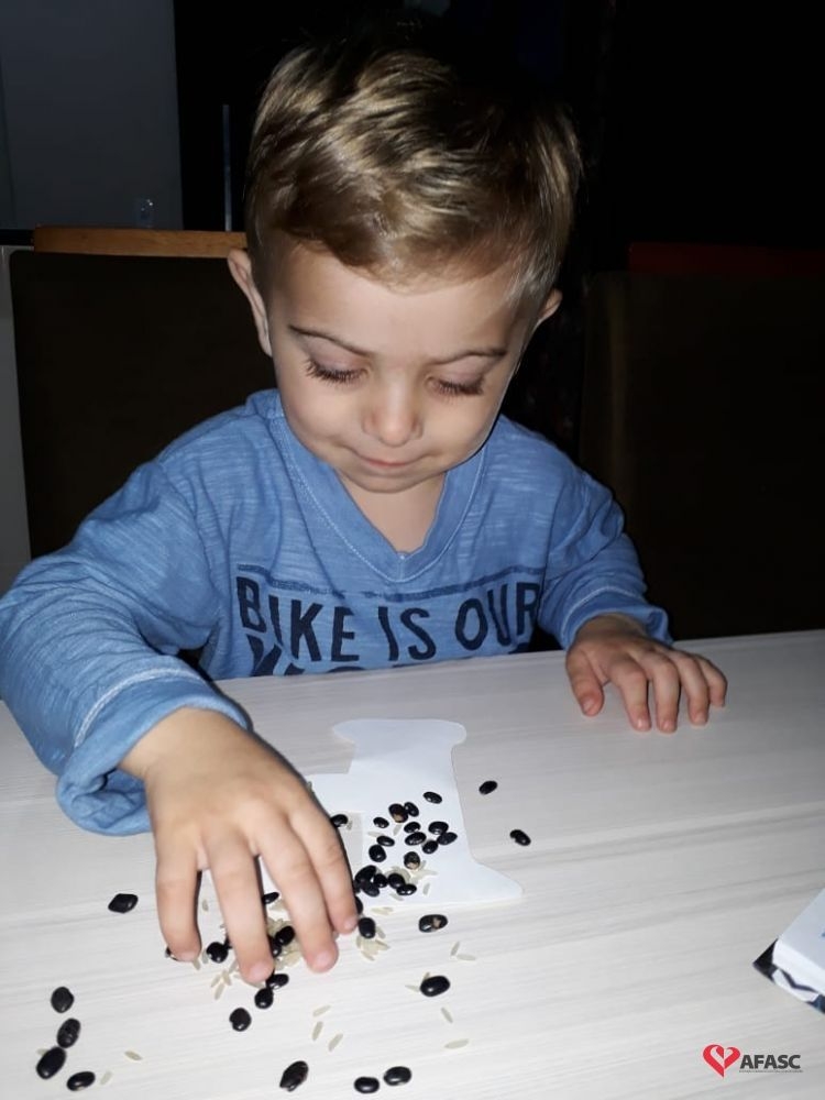 A atividade faz parte do projeto “Identidade e autonomia”, e desde que as ações começaram tem proporcionado que as crianças explorem e identifiquem a letra inicial de seu nome e o alfabeto.