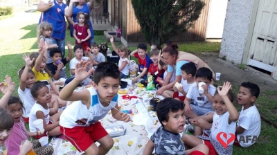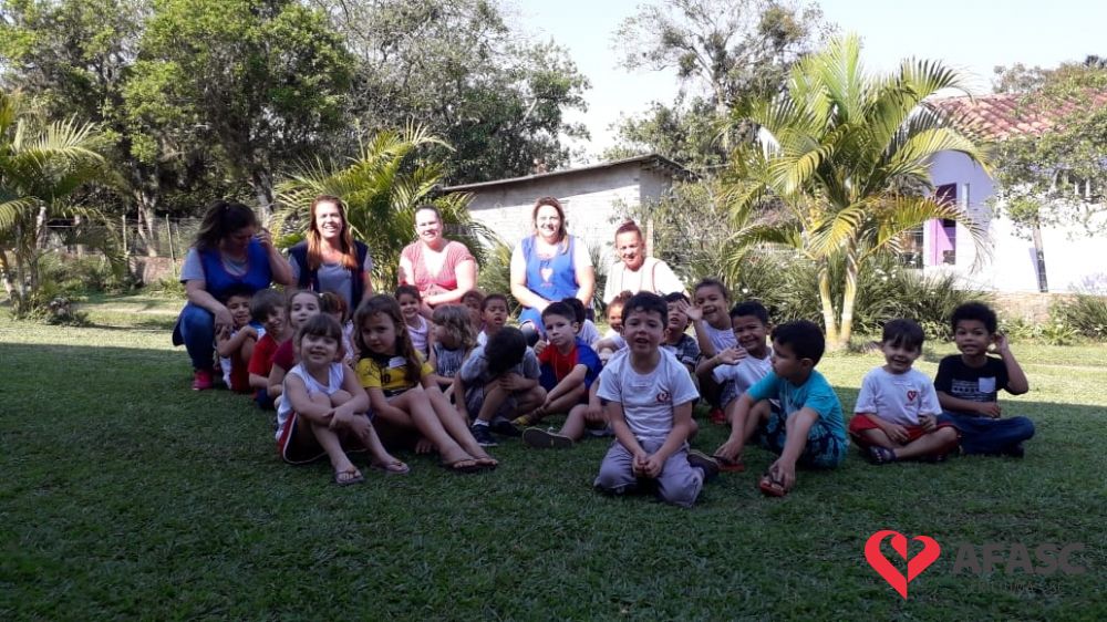 As crianças dos Grupos V A e B do Centro de Educação Infantil (CEI) da Associação Feminina de Assistência Social de Criciúma (Afasc) Centro Social Urbano curtiram os encantos da natureza através da atividade “Passeio no sítio”. A visita além de trazer uma nova experiência para os pequenos, proporcionou momentos de muita aprendizagem sobre o Meio Ambiente, tema este que já vem sendo estudado pelas crianças através do projeto “Soldados da Natureza”.
