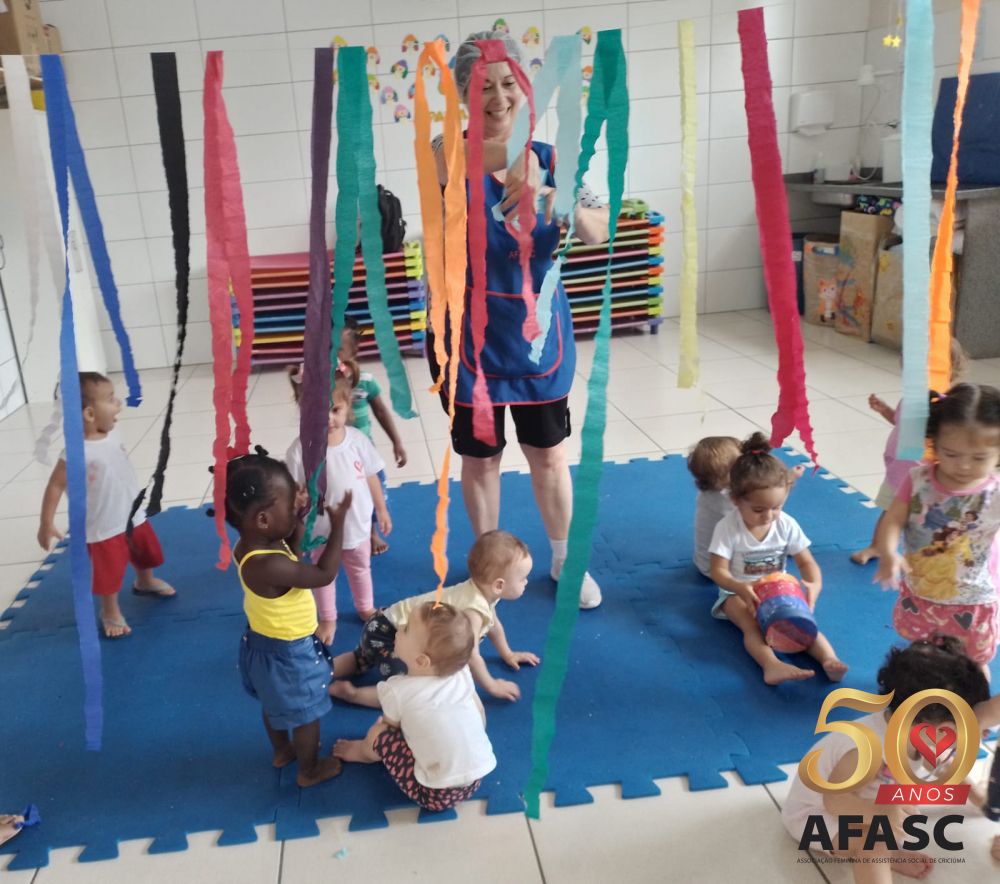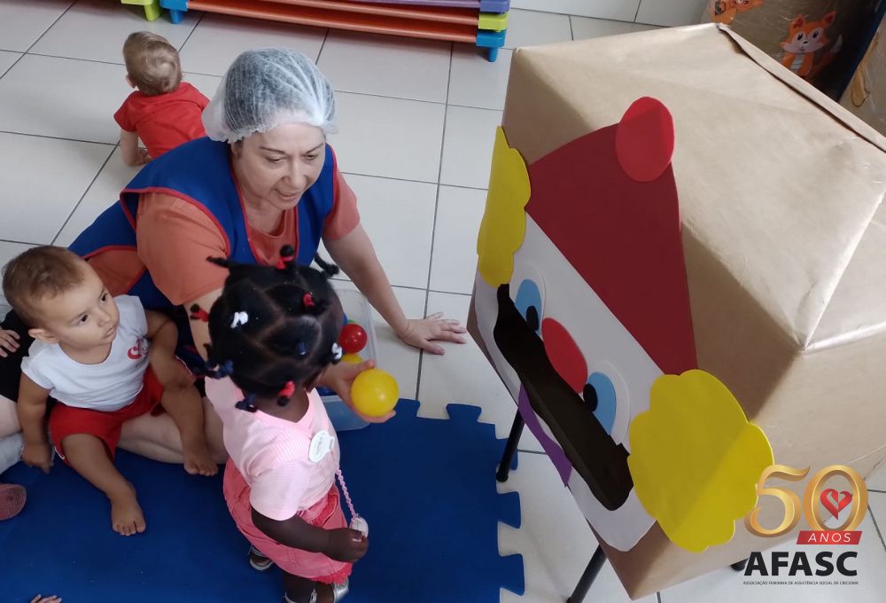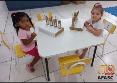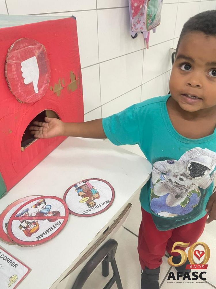 Na educação infantil, as aprendizagens e o desenvolvimento das crianças têm como eixos estruturantes as interações e brincadeira, garantindo assim os direitos de conviver, brincar e explorar. Para trazer essas ações para dentro da creche, a comunidade escolar está trabalhando o projeto “Brincando e aprendendo no CEI Afasc Deputado Ulysses Guimarães”.