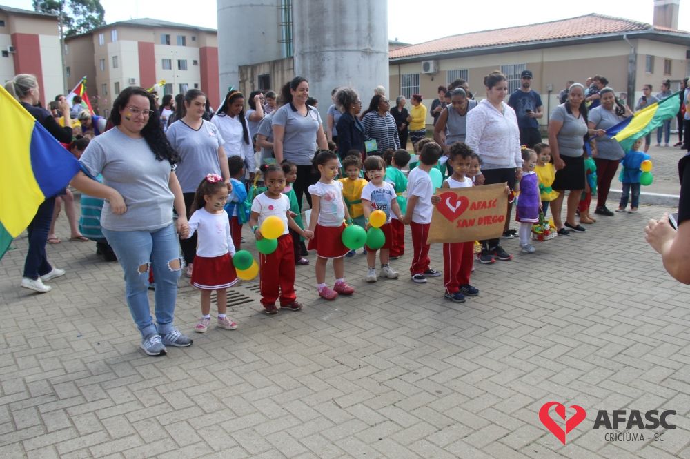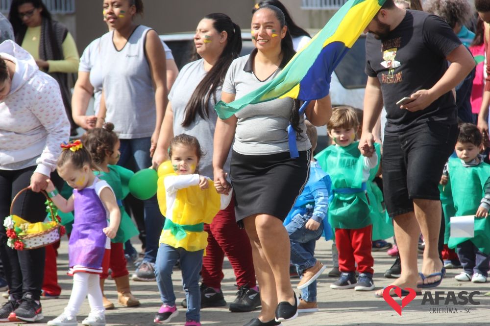 O Centro de Educação Infantil (CEI) da Associação Feminina de Assistência Social de Criciúma (Afasc) HG e San Diego realizaram um desfile cívico para celebrar os 197 anos de Independência do Brasil.