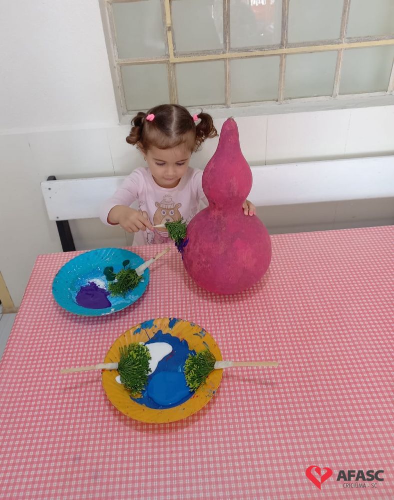 As profissionais do CEI Afasc HG trouxeram para dentro da creche o projeto macro “Eu e a natureza”, onde as crianças tiveram garantidos seu direito de aprendizagem e desenvolvimento por meio de atividades lúdicas com elementos da natureza.