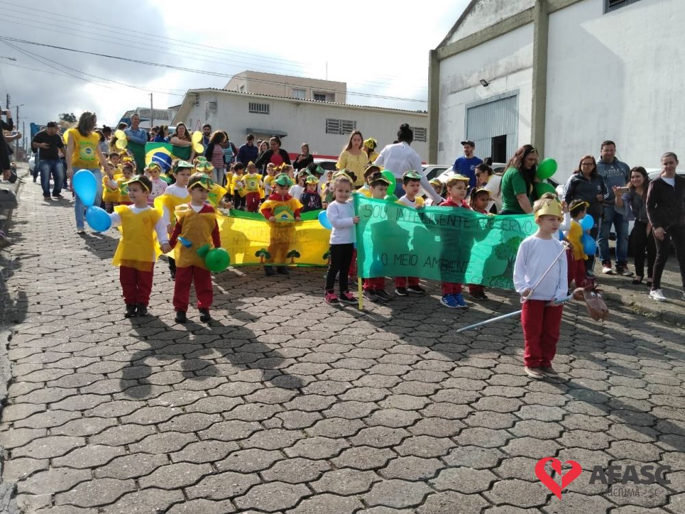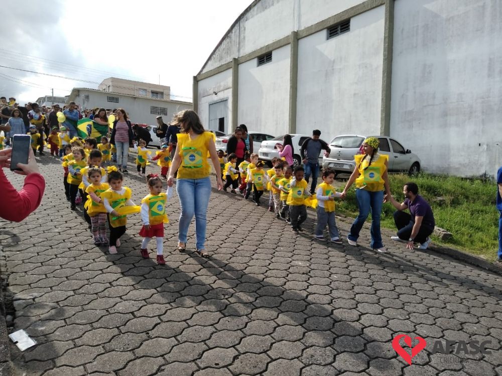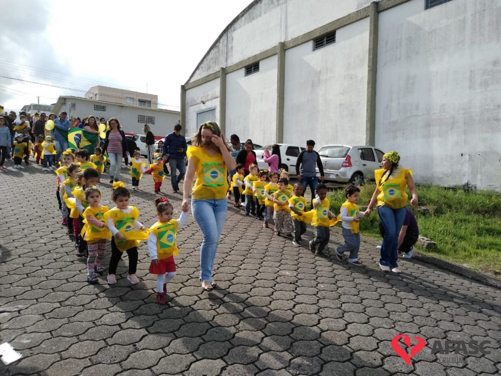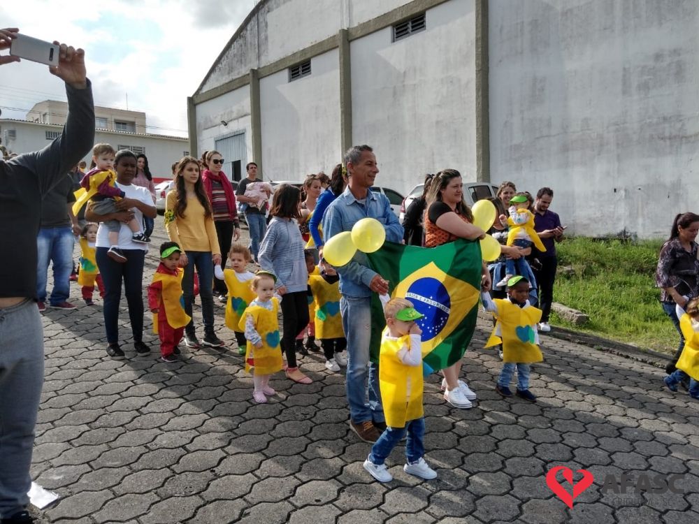 O Centro de Educação Infantil (CEI) da Associação Feminina de Assistência Social de Criciúma (Afasc) Maria José Nunes Pires Castelan realizou um desfile cívico para celebrar os 197 anos de Independência do Brasil.