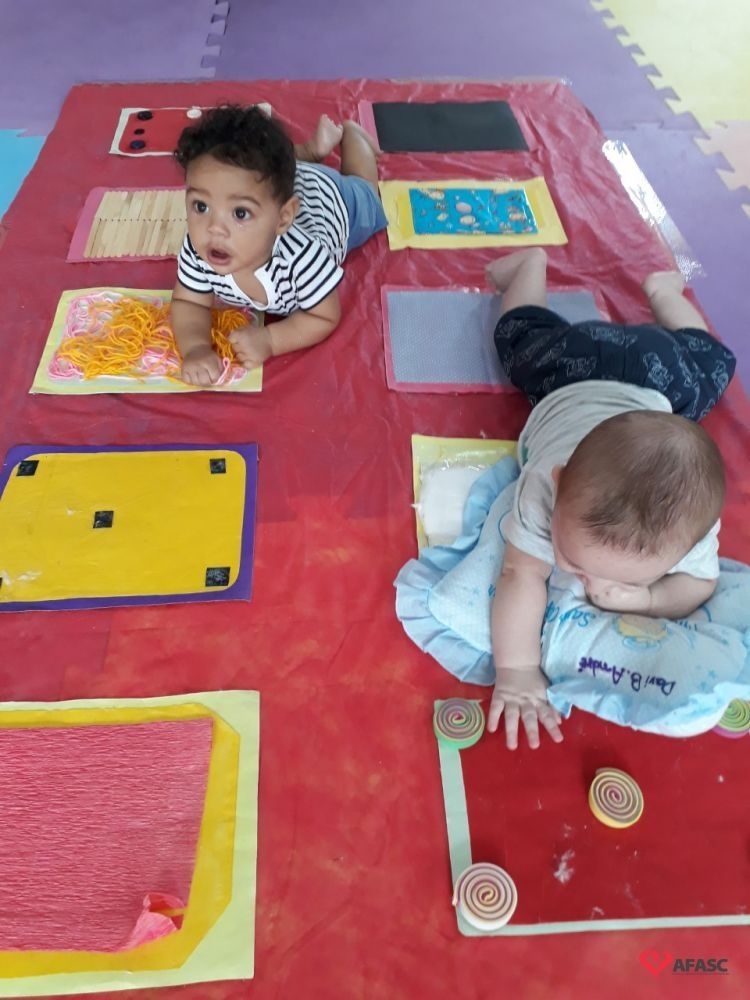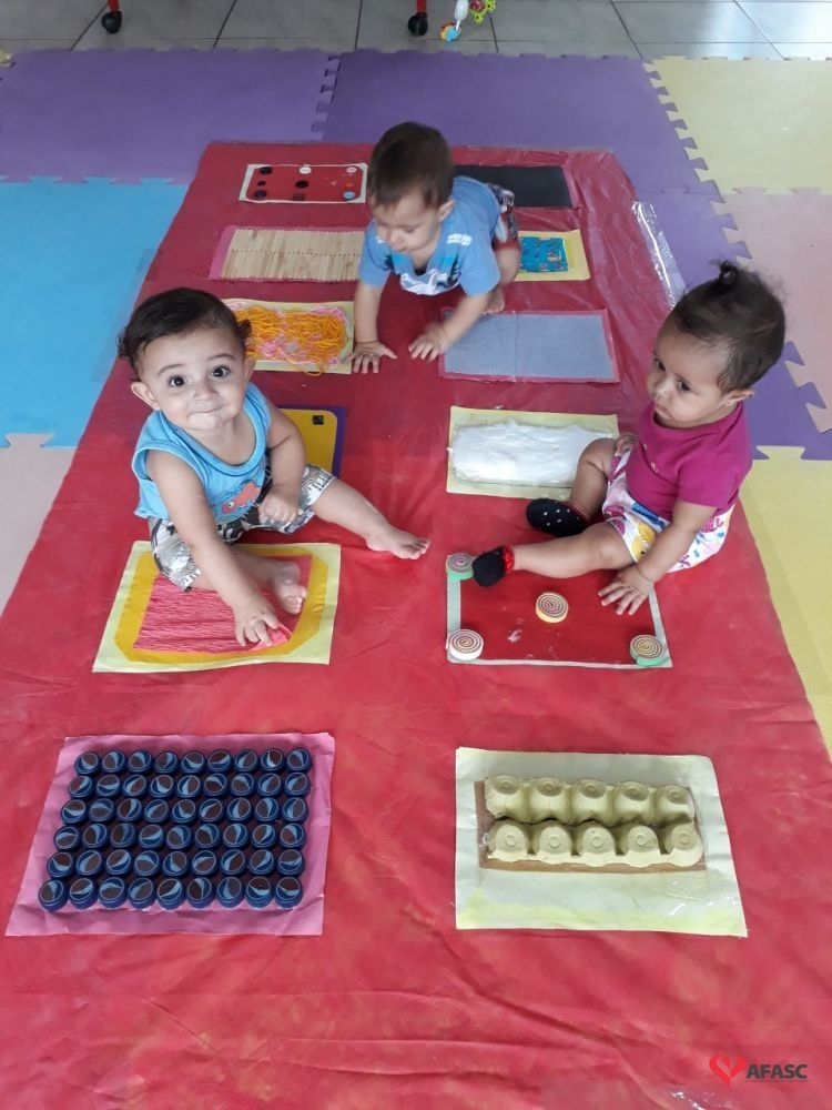Nos primeiros anos de vida, as crianças estão imersas no universo das imagens. Começam a perceber que podem agir sobre papeis, objetos e telas, provocando mudanças, produzindo algo para ser visto, buscando tocar em tudo o que vê, percebendo diferentes sensações. Tudo isso está sendo realizado com as crianças do Grupo I do Centro de Educação Infantil (CEI) da Associação Feminina de Assistência Social de Criciúma (Afasc) Moradas da Colina por meio do projeto “Brincando e explorando texturas e sensações”.