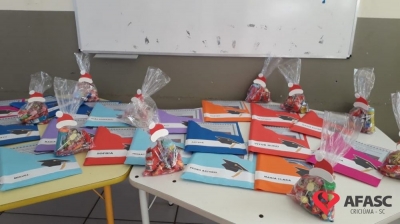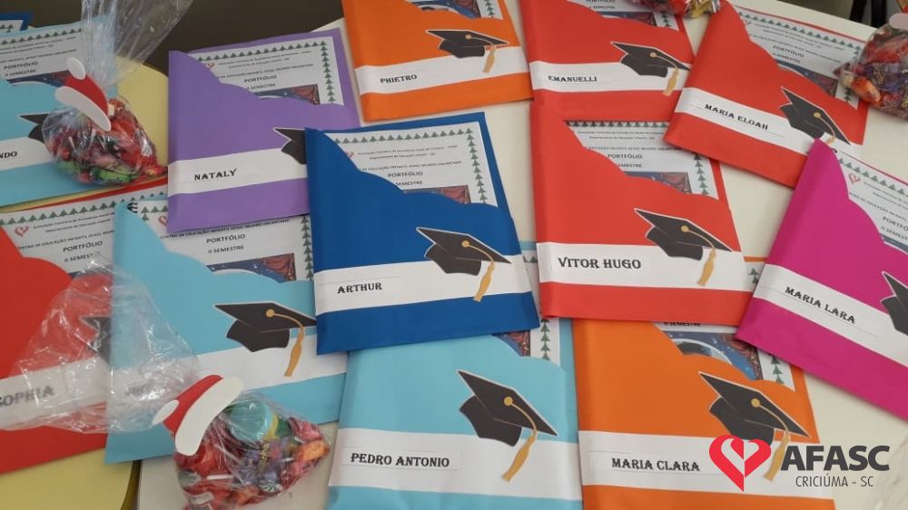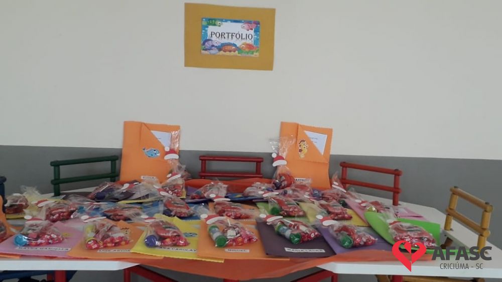 Com a chegada do final de ano, as atividades escolares também encerram. E junto com ela, vem o momento de celebrar as alegrias vividas e ver de perto tudo que as crianças conseguiram aprender e desenvolver durante o ano. Assim foi marcada a entrega de portfólios para os pais e familiares das crianças do Centro de Educação Infantil (CEI) da Associação Feminina de Assistência Social de Criciúma (Afasc) Mundo Encantado.