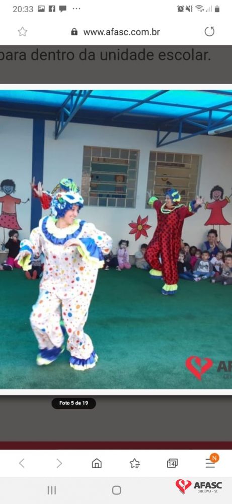 Durante o segundo semestre de 2019, o Centro de Educação Infantil (CEI) da Associação Feminina de Assistência Social de Criciúma (Afasc) Nova Esperança, realizou diversas atividades ligadas ao Projeto Macro “Respeitável público: bem-vindos ao mundo do circo”. O projeto trouxe para o CEI um leque de possibilidades, onde as crianças e famílias se uniram, para ampliar seus conhecimentos, acerca da cultura circense, e do mundo.