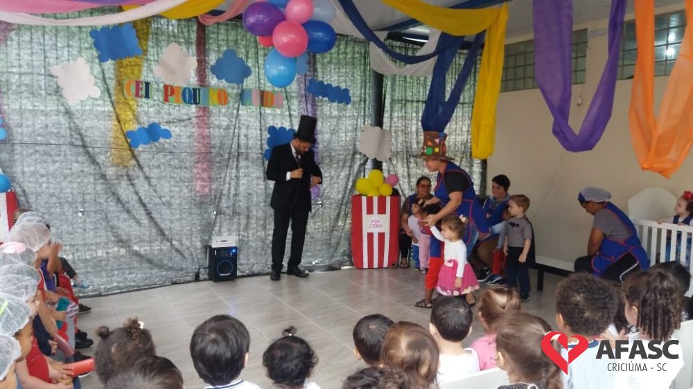 Durante o segundo semestre de 2019, o Centro de Educação Infantil (CEI) da Associação Feminina de Assistência Social de Criciúma (Afasc) Pequeno Mundo, realizou diversas atividades ligadas ao Projeto Macro “O espetacular Mundo Circense”. Para encerrar o projeto, que trouxe muita alegria e diversão para as crianças, as profissionais e as realizaram um espetáculo de circo, e confeccionaram diversos brinquedos com tema circo.