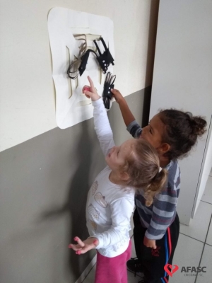 Construção de brinquedos utilizando materiais alternativos, brincadeiras com música e faz de conta. Essas são algumas das ações que estão sendo desenvolvidas pela professora Aparecida Luz, com o Grupo IV B do Centro de Educação Infantil (CEI) da Associação Feminina de Assistência Social de Criciúma (Afasc) Pingo de Gente, por meio do projeto “Contos, como unir o útil ao imaginário”. As crianças brincaram com a música “A dona aranha”.