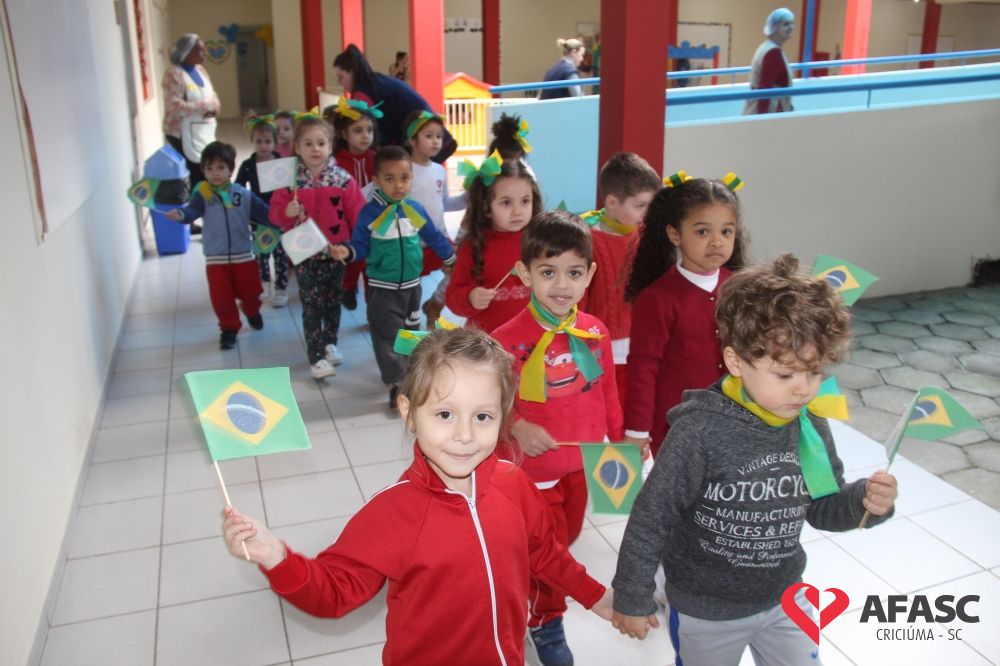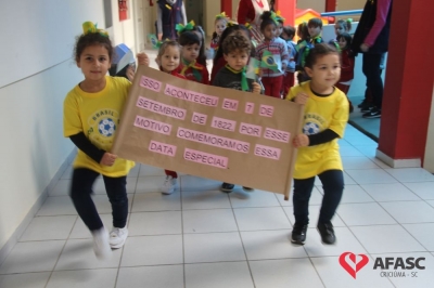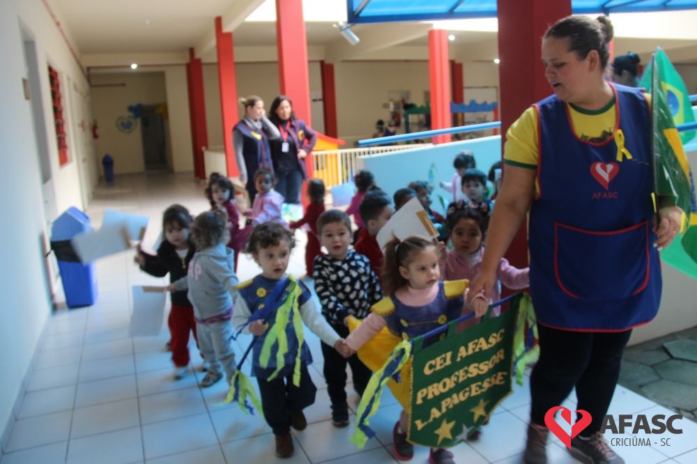 O Centro de Educação Infantil (CEI) da Associação Feminina de Assistência Social de Criciúma (Afasc) Professor Lapagesse realizou um desfile cívico para celebrar os 197 anos de Independência do Brasil.