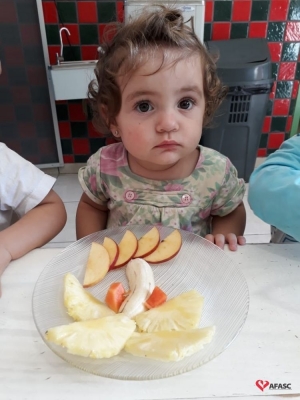 De acordo com Aline, todo processo de estimulação deve buscar desenvolver nas crianças a independência, a autoestima, sua autonomia, garantindo assim que a criança se sinta segura para enfrentar novas experiências. “Essa atividade lúdica e prazerosa, proporcionou que os estímulos necessários para cada idade pudessem se desenvolver de forma plena, incentivando novas vivencias que facilitaram conquistas e aprendizagens. Quando eles viram os desenhos formados com frutas eles se mostraram encantados, pois ficou claro que além de ser gostoso ficou muito divertido”, relata a professora.