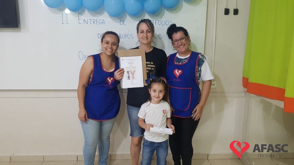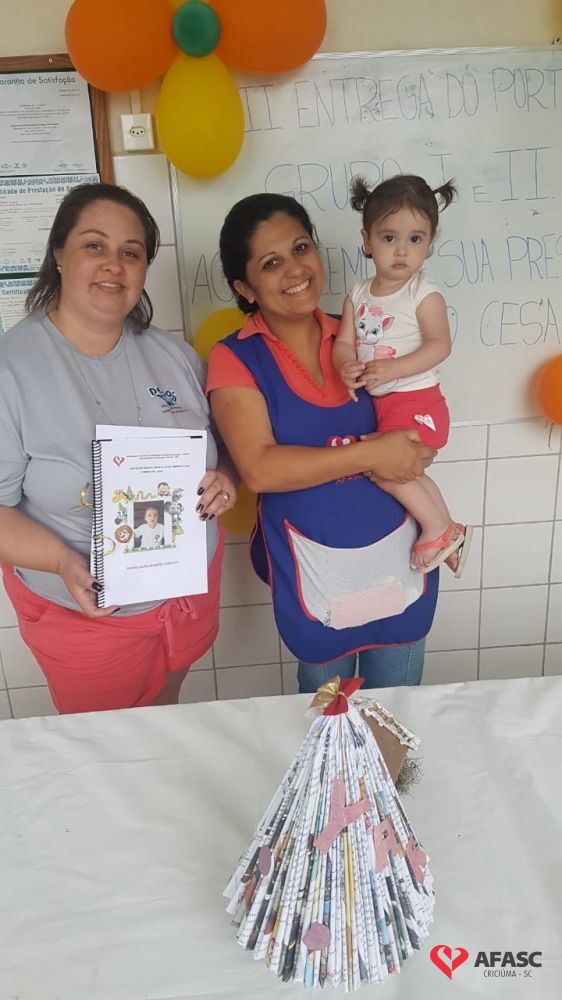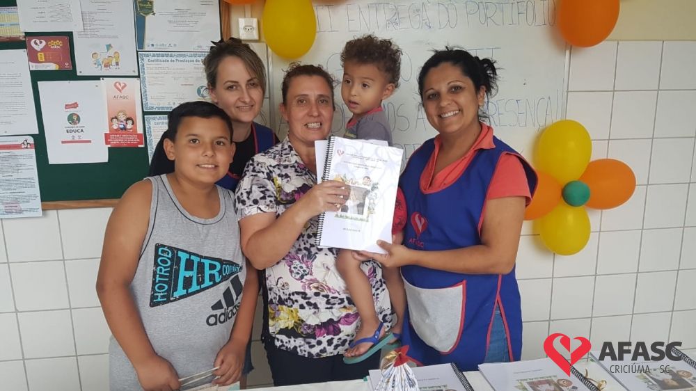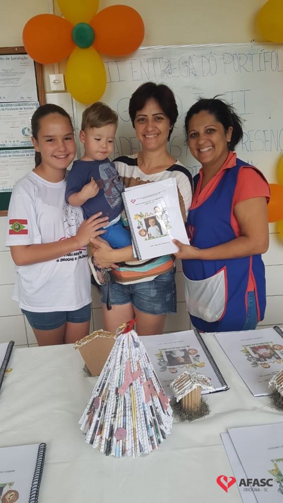 Com a chegada do final de ano, as atividades escolares também encerram. E junto com ela, vem o momento de celebrar as alegrias vividas e ver de perto tudo que as crianças conseguiram aprender e desenvolver durante o ano. Assim foi marcada a entrega de portfólios para os pais e familiares das crianças do Centro de Educação Infantil (CEI) da Associação Feminina de Assistência Social de Criciúma (Afasc) Umberto Cesa.
