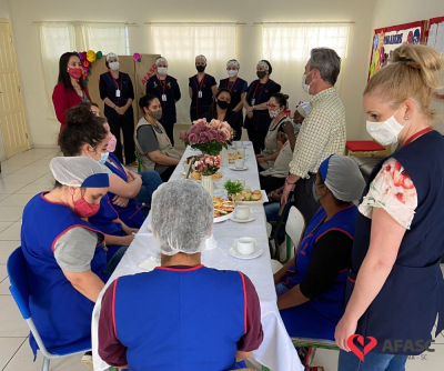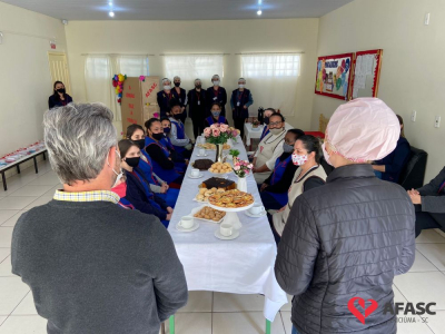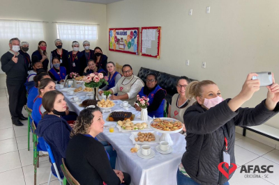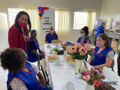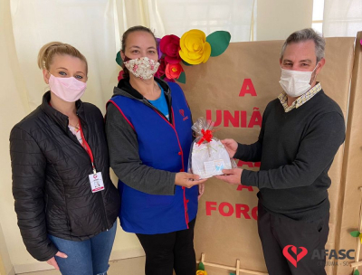 Foi feita a entrega da premiação para as profissionais da creche. As vencedoras receberam um café organizado pelo departamento e um troféu, que foi entregue pela presidente de honra, Adriana Salvaro.